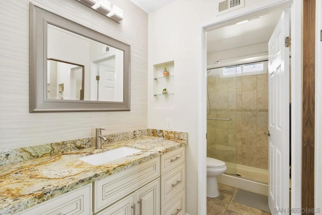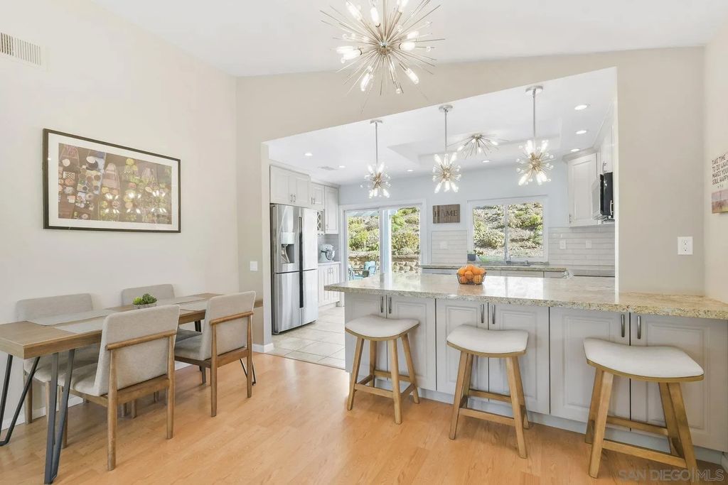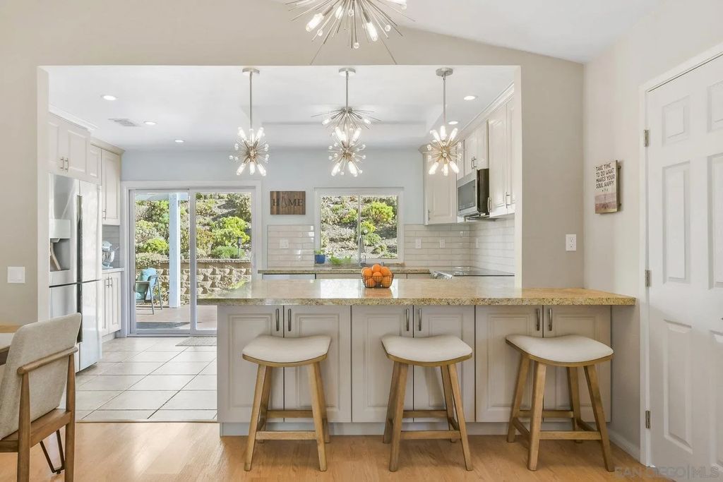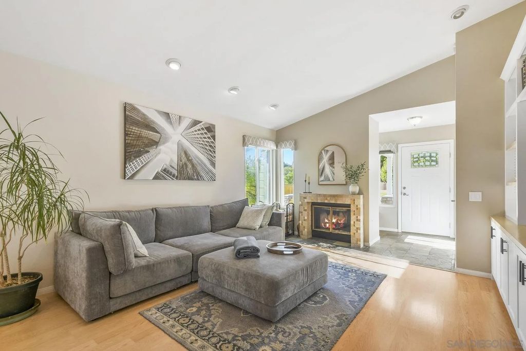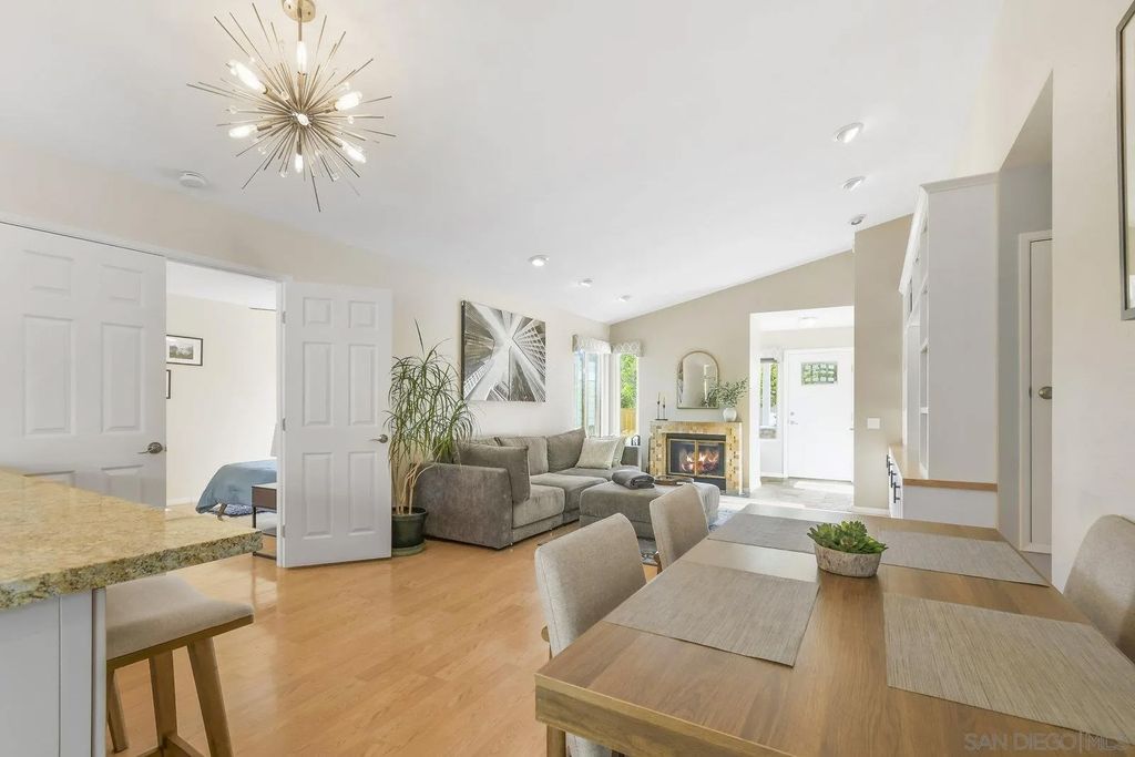 Discover this tastefully updated single-story home in Scripps Ranch on a spacious lot, offering a bright, open floor plan and modern upgrades throughout. The family room includes a built-in entertainment wall and opens to the remodeled kitchen with updated counters, cabinetry, and tons of storage. The third bedroom serves as a generous flex-space option suitable for an office, guest room, or combined use. Additional improvements include updated bathrooms, flooring, lighting, and ceiling fans. The exterior features professionally landscaped grounds with succulents, fruit trees, and artificial turf for low-maintenance living. The finished garage includes updated drywall and epoxy flooring. Located minutes from top-rated Jerabek Elementary, The French Oven bakery, neighborhood parks, and extensive trails. No HOA or Mello-Roos.