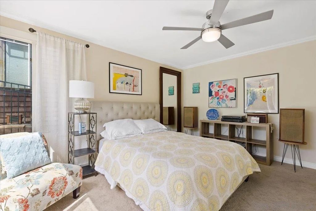 Spectacular location, in the heart of La Jolla Village, this perfectly situated, first floor condominium is just steps from renowned restaurants, boutique shops, world class art galleries and a multitude of coastal attractions. Stepping inside the architecturally unique, curvilinear entry way you are immediately greeted by the open concept living, dining, kitchen, great room with sliding doors that lead you to the common patio/garden space, surrounded by tall ficus trees for privacy. Living space features wall-to-wall picture window to enjoy your quintessential La Jolla coastal views, including the iconic La Valencia Hotel, and the classic palm tree lined Coast Walk that graces Ellen Browning Scripps Park, all of this plus views of the blue Pacific Ocean all the way up the coast past the bluffs of Blacks Beach. Large windows in each room let in the natural sunlight. Hardwood flooring in the main areas and carpet in the bedrooms. Kitchen features stainless appliances, dual corner sinks, electric stove, and spacious pantry. Stacked washer and dryer in unit. 2 mini-split systems for immediate cooling and heating, and an additional 3 ceiling fans. Don't pass up this opportunity to be on a vacation 24/7, 365 days a year!
