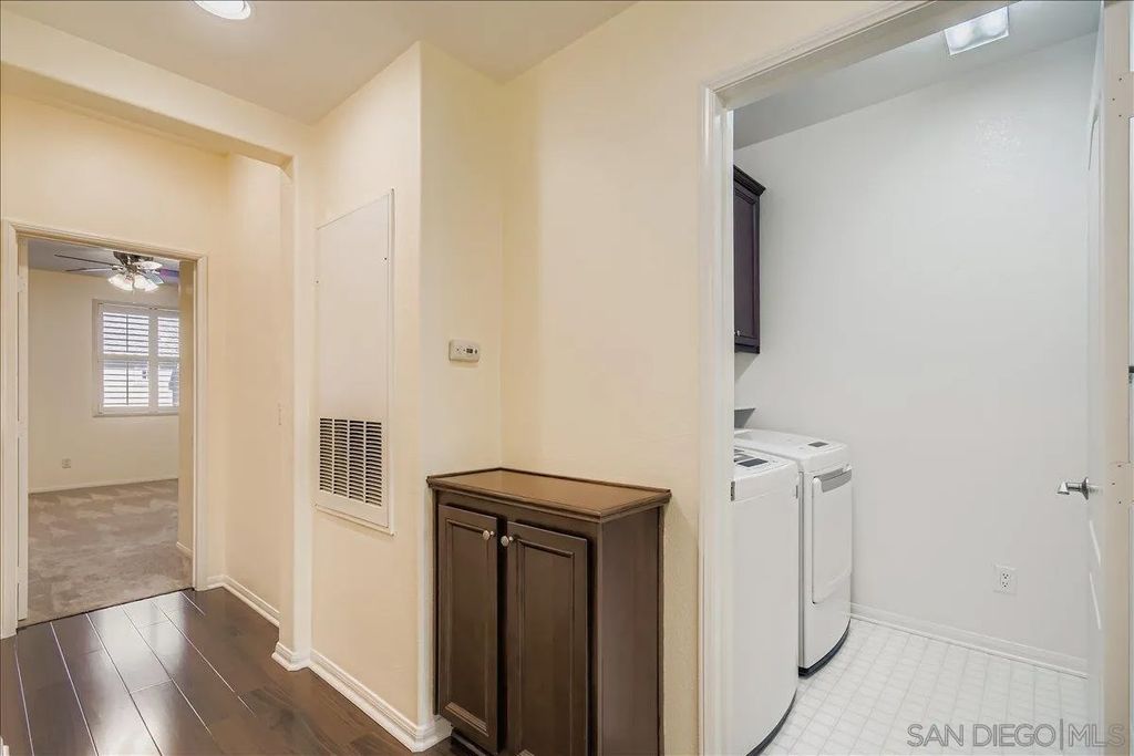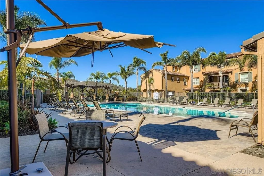 This unit is a 3 bed 2.5 bathroom townhome at Gianni is 4S Ranch. Step into a bright, open-concept floor plan with large windows and abundant natural light. The spacious living and dining areas connect to a well-appointed kitchen featuring granite countertops, stainless steel appliances, gas range, pantry and ample cabinet space, ideal for everyday cooking or hosting. All three bedrooms are upstairs, including a primary suite with walk-in closet, dual-sink vanity and large shower. Secondary bedrooms are well sized with good closet space and share a full bath. Additional features include a downstairs powder room, indoor laundry, recessed lighting, ceiling fans, central A/C, dual-pane windows and an attached 2-car garage with direct access and extra storage. The private front patio offers room for seating, plants or a BBQ. Gianni at 4S Ranch provides a community pool, spa, BBQ area, playgrounds and greenbelts, with maintained walkways and guest parking. Located in the award-winning Poway Unified School District and close to 4S Commons shopping, restaurants, parks, sports fields, trails and freeway access, this townhome delivers a low-maintenance lifestyle in a convenient North County location. HOA covers exterior maintenance, roof, common areas and community amenities, allowing owners to focus on daily living rather than upkeep; strong local rental demand also makes this property a solid long-term hold for either primary occupancy or investment. Flexible 3-bedroom layout supports work-from-home or guest space