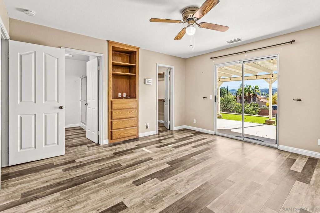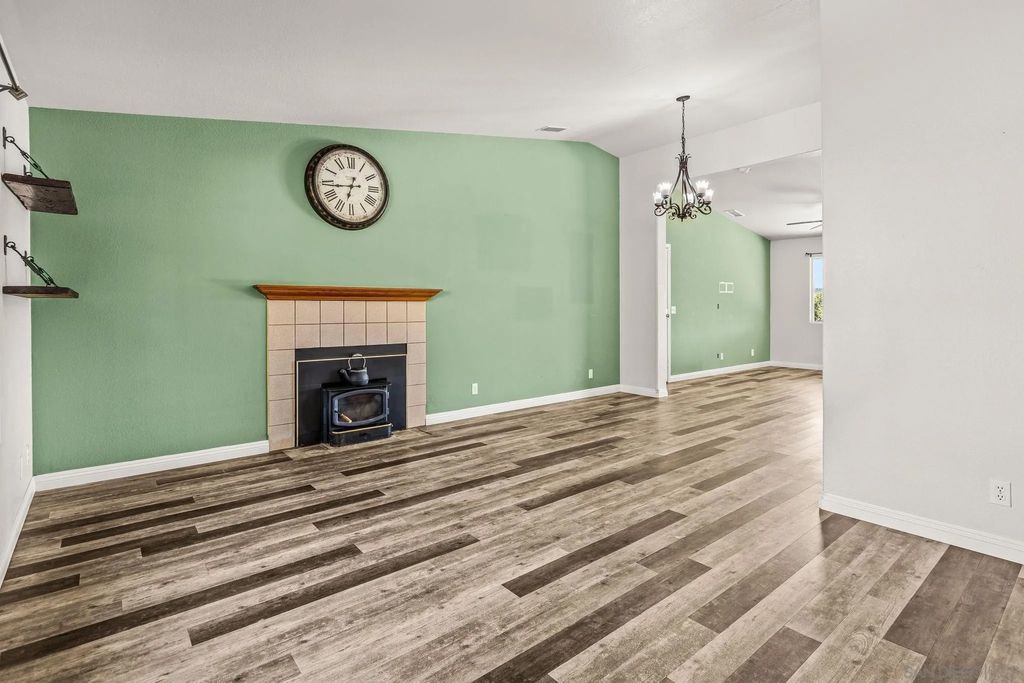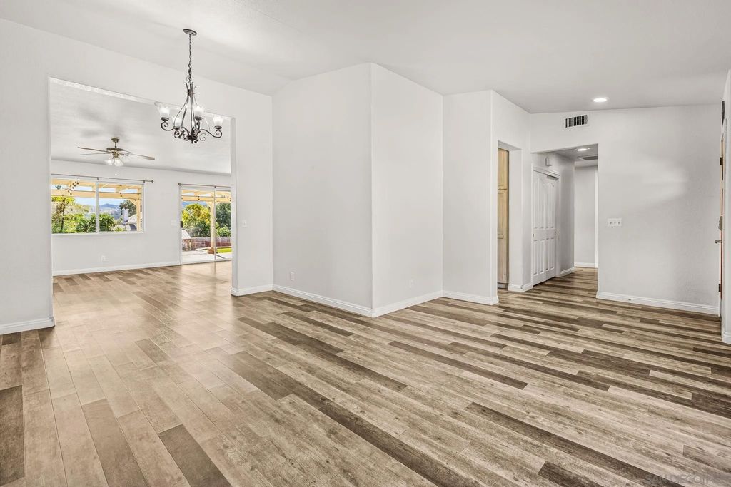 Welcome home! Appealing 4 bedroom /2 bath ranch home in Ramona's San Diego Country Estates! High ceilings & open floorplan greet you in this single level home. Vinyl plank flooring throughout the entire common areas & primary bedroom. Off the entry way the living room features a large picture window & wood burning stove. Remodeled kitchen includes stainless steel appliances/ quartz counters which open to the family room, breakfast area and backyard. Hallway leads back to the primary bedroom and bathroom with a walk in closet. The three additional bedrooms share the hall bathroom. Laundry is located conveniently in a hallway closet. Extra deep 2 car garage has plenty of room for storage in addition to a pull down ladder for more attic storage. Front and back yards are massive with artificial turf and mature trees and landscaping. A large covered patio off the back has great southern views is a great area for entertaining. The terraced garden beds and stairs lead down to the lower yard featuring dog run, fruit trees, tough shed for storage and a large covered patio with wood burning fireplace. Zoned for horses with easement and vehicle access through the double back gates. Walking distance to James Dukes Elementary and 13 minutes to downtown Ramona. Experience all the Country Estates has to offer including the clubhouse w/a restaurant, sports bar, event space, boutique hotel, 18 hole golf course, tennis and pickleball courts, and a community pool and spa. The community also provides a vast trail system for horse riding, biking, or hiking. Some photos virtually staged.