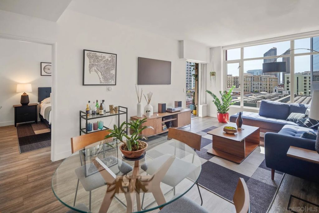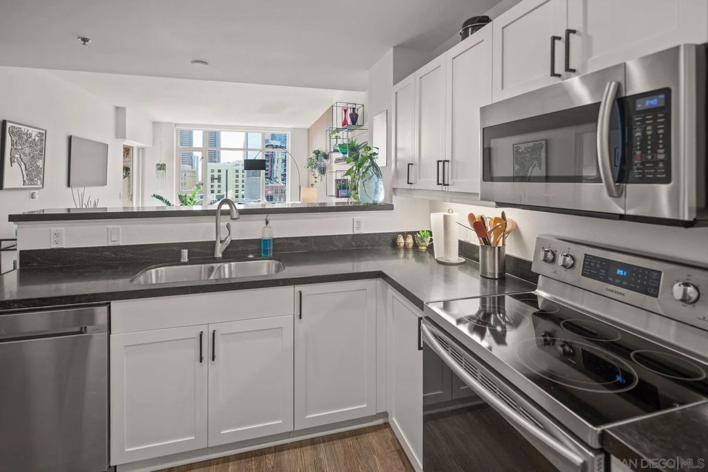Modern, light-filled, and impeccably maintained, this stylish 1-bedroom residence at Diamond Park Terrace offers captivating views directly into Petco Park. Offered turn-key and move-in ready, the home features a bright open-concept layout with wood flooring and a beautifully updated kitchen complete with ample cabinetry, generous counter space, and stainless steel appliances. The spacious bedroom enjoys downtown views and includes a walk-in closet with custom shelving, while the well-appointed bathroom offers convenient dual access. Additional highlights include an art-frame TV and a discreet in-wall safe for added comfort and security. The home comes with one secure gated parking space and a separate storage unit. Residents enjoy exceptional amenities, including a rooftop terrace overlooking Petco Park's iconic Baseball Diamond, fitness center, resident lounge, and BBQ areas. Ideally located just steps from Petco Park, the Harbor and Marina, Gaslamp Quarter, Little Italy, and San Diego's best dining, shopping, and entertainment"”this is a rare opportunity to own a truly turn-key home in one of Downtown's most dynamic locations.