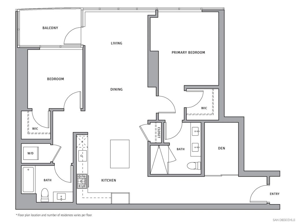 Welcome to Andia by Bosa Development. Now selling and already under construction with an anticipated completion date of fall 2027, Andia is the first new Downtown San Diego condominium high-rise in nearly 8 years. Featuring resort-like amenities and sophisticated interior design, the residences at Andia offer a seamless blend of style and comfort with the city as your backdrop. Residence 3001 is a west-facing 2 bedroom plus den boasting a split bedroom layout, integrated Bosch kitchen appliances with Zephyr hood, kitchen island with waterfall edge, polished chrome Kohler fixtures, Caesarstone quartz countertops with polished tile backsplash, primary bathroom with dual vanity sinks, and glass enclosed shower, two walk-in closets, front-loading full-size washer and dryer along with a spacious balcony featuring spectacular city & bay views. Andia by Bosa Development brings new heights to Downtown San Diego. Featuring modern design and resort-styled amenities, Andia soars 40 stories above the center of the city, showcasing 399 thoughtfully appointed 1- to 3-bedroom residences ranging in size from ~620 to ~1,729 square feet with two contemporary finish palettes. This is not an offer to sell but intended for information only. The developer reserves the right to make modification in materials, specifications, plans, pricing, designs, scheduling and delivery without prior notice. Renderings, photography, illustrations and other information described herein are representative only and are not intended to reflect any specific feature or view when built. No representation and warranties are made with regard to the accuracy, completeness or suitability of the information published herein.