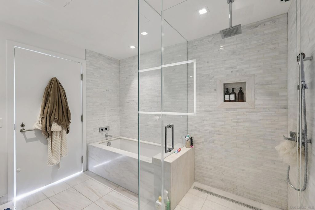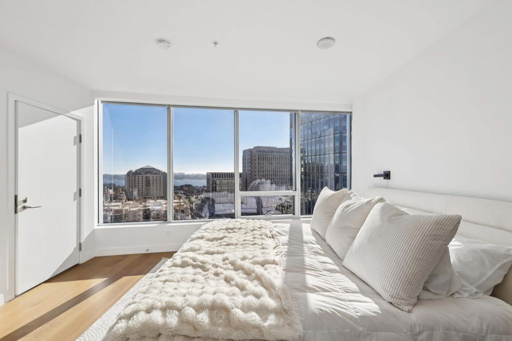 This exceptional southwest-facing 2bed2bath 1556sf residence at iconic Pacific Gate offers panoramic views of the downtown skyline, Pacific Ocean and Coronado Bridge. Floor-to-ceiling glass fills the open floor plan with natural light and opens to a spacious private balcony ideal for sunset views. Designer finishes include wood floors, custom built-ins, wine refrigerator, and a chef's kitchen with Wolf, Sub-Zero, and Miele appliances. Enjoy world-class amenities including 24-hour concierge, luxury car fleet, EV charging, rooftop pool and cabanas, screening room, and pet retreat"”offering the ultimate downtown San Diego luxury lifestyle. From the moment you enter, abundant natural light, designer accents, and breathtaking vistas create an unforgettable first impression. The open-concept layout features a spacious living and dining area that flows seamlessly to a large private balcony"”perfect for enjoying spectacular sunsets and the energy of the city below. The thoughtfully designed split floor plan offers optimal privacy, ideal for guests or a sophisticated home office. This turnkey residence is the perfect blend of refined comfort, architectural excellence, and world-class convenience"”offering a rare opportunity to live above it all in downtown San Diego's most prestigious address.