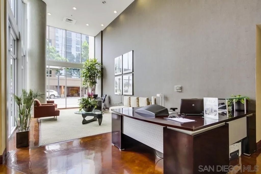 Treo is perfectly situated in Little Italy/Columbia. This condo offers an ideal blend of vibrant city living and peaceful retreat. Ideal space in a highly popular Little Italy-Columbia. Work from home! The best of San Diego is literally at your doorstep from amazing restaurants and coffee houses to nearby San Diego harbor front and easy access to San Diego Int'l, Downtown, world famous San Diego Zoo, historic Balboa Park. Concierge, Pool, Spa, Gym, BBQ, conference/community room, security, Secure underground parking. W/D in unit with Gas range. City Views/Lights off East facing Balcony. Pool located in sunny area!