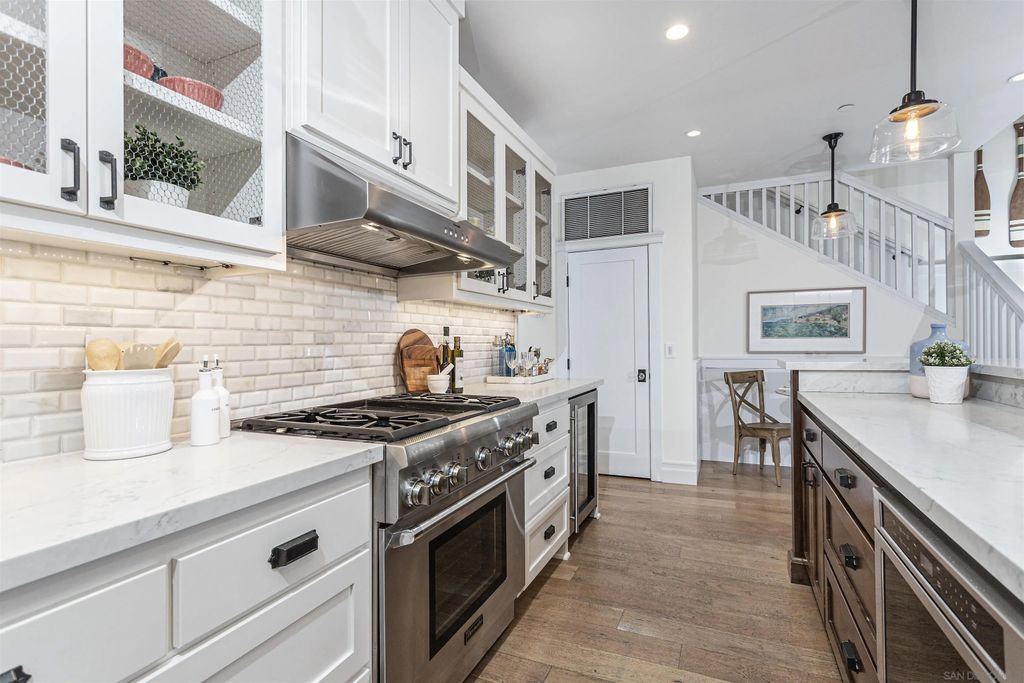 Prime Beach Cottage in Coronado Village. Unbeatable Location Literally seconds from the beach! Experience the ultimate coastal lifestyle, where the ocean is just a heartbeat away. Wake up & stroll to the sparkling sands or your favorite cafe on Orange. The iconic Hotel del Coronado is a short, leisurely walk away, perfect for sunsets, cocktails, or simply soaking in the magic. This quintessential cottage exudes classic charm, with its inviting wraparound porch ideal for morning coffee or evening gatherings. The porch is framed by a white picket fence & private yard. Step through the elegant Dutch entry door into a bright & open floor plan that seamlessly blends indoor & outdoor living. Highlights include: living & dining area with a romantic fireplace, high ceilings, & luxury plank flooring throughout. Gourmet kitchen featuring ample quartz countertops, see-through glass cupboards, a built-in wine cooler, & premium Thermador range. Expansive breakfast bar plus dining area. Sliding doors that open directly to the wrap-around deck for effortless al fresco entertaining. Primary suite with his-&-hers closets, a bonus retreat room & private balcony. Bedroom & full bath located on the first level. Smart home features & attached garage. Combining modern luxuries with classic cottage charm, this gem offers the perfect blend of relaxation & sophistication. Located in Coronado's coveted beach enclave, where location is everything, don't miss this rare opportunity to own your slice of paradise!