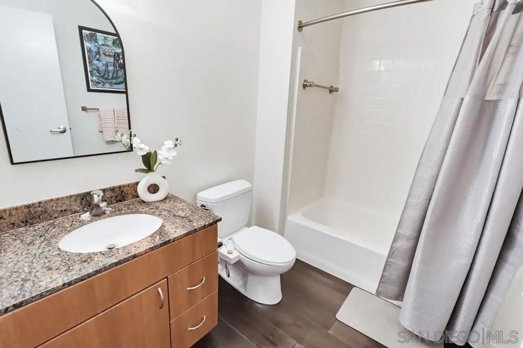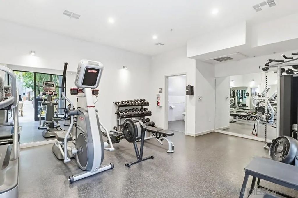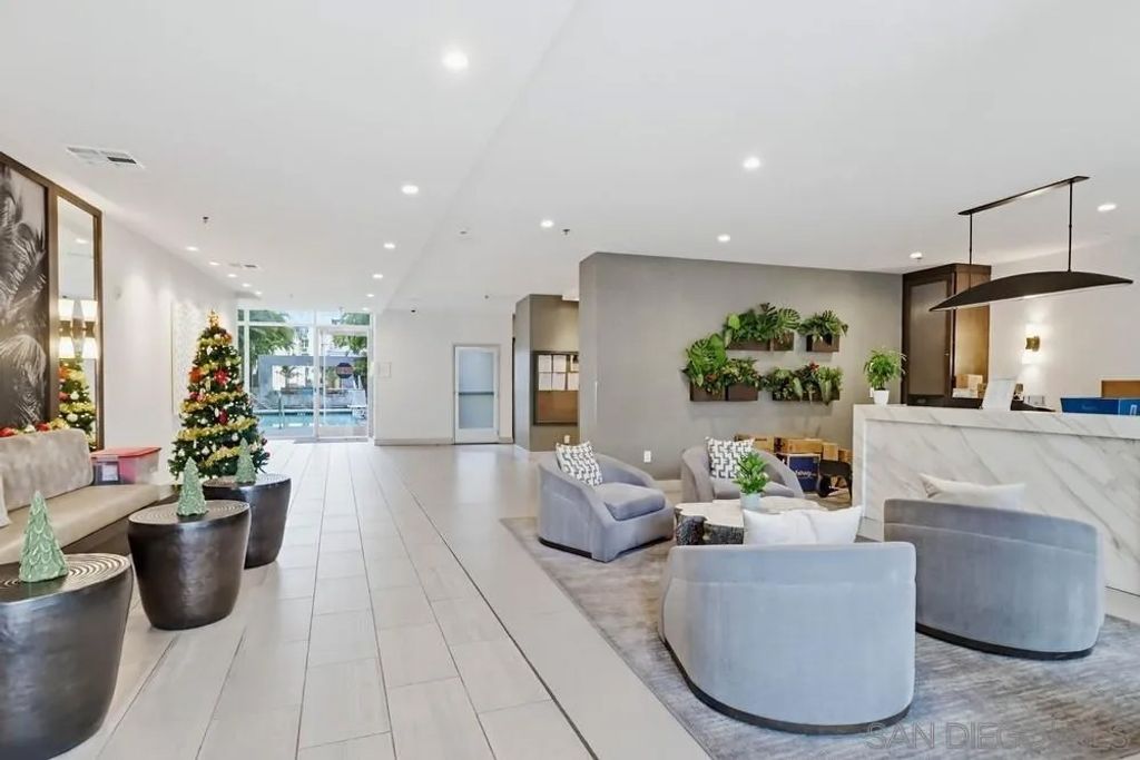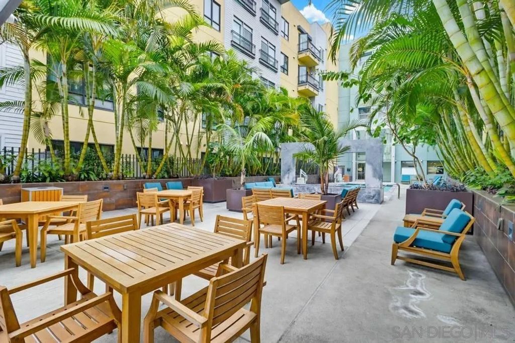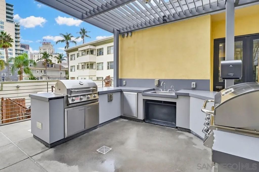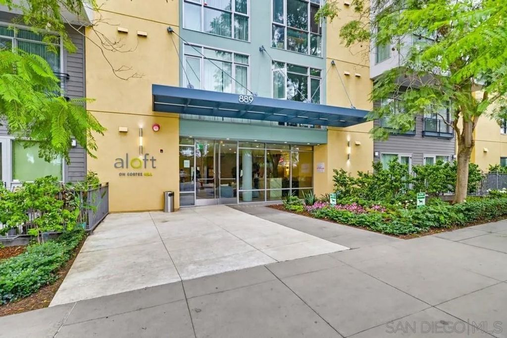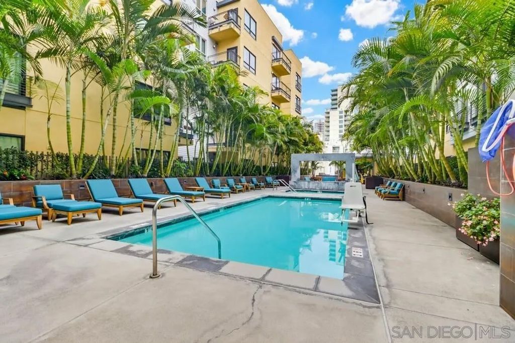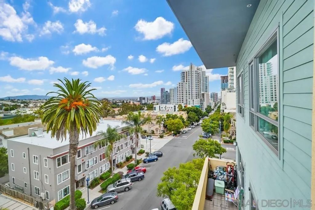 TOP FLOOR UNIT WITH BEST FLOOR PLAN IN COMPLEX! Downtown living at its finest, located in the highly desirable neighborhood of El Cortez. This spacious 1 bd/2bath unit has breathtaking South and East facing views with 20' floor to ceiling windows, upgraded flooring, washer/dryer in unit, huge walk in closet, and underground assigned parking. Lots of street parking available for guests. Resort style heated pool/spa area with plenty of lounge chairs and seating, fire pit, fitness center and 24hr front desk personnel, onsite security, landscaping & park with playground