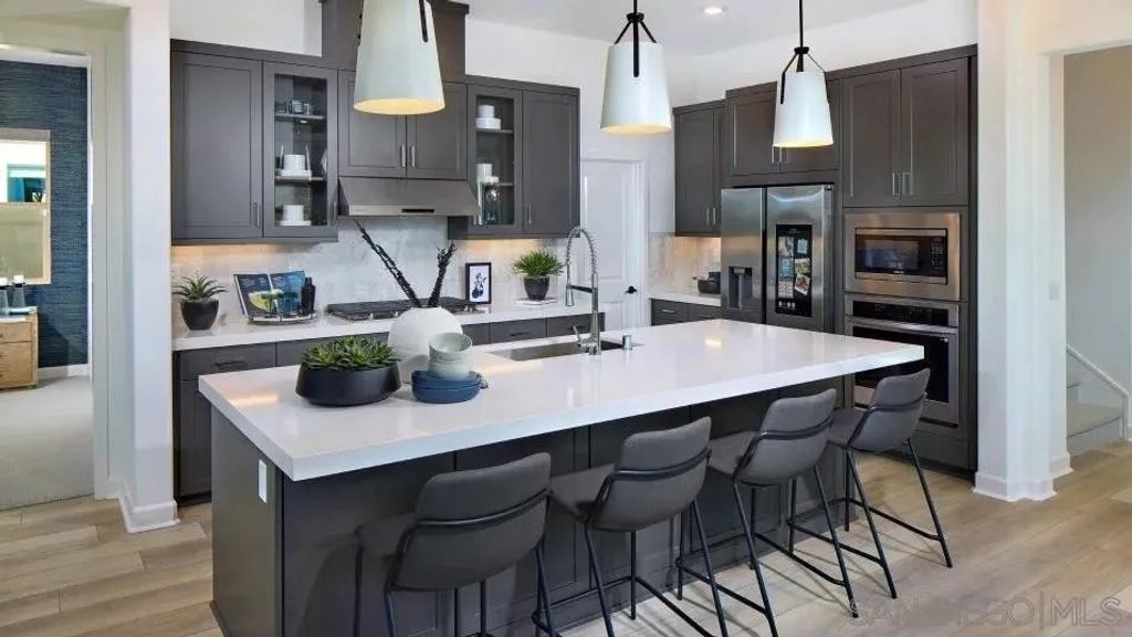 This home is ready for your move-in and already has this home includes upgraded backsplashes and flooring! flooring and backsplashes installed. It is a two-story home for ages 55 and better that features plenty of shared and private spaces. Near the entry is a bedroom suite with a private bathroom, as well as a powder room accessible to both guests and residents. A den provides improved versatility on the first level, just before the open layout shared between the Great Room, kitchen and dining room that opens to a covered California Room. The owner's suite is also on the first level with a large bathroom and walk-in closet. The second level features a large bonus room and additional bedroom and bathroom. Junipers is a gated master-planned community for active adults aged 55 and better that combines resort-style living with a top-notch location in San Diego, CA Woodlands is a collection of new single-family homes now selling in Junipers' gated master-planned community in San Diego, CA for active adults aged 55 and better. This collection offers some of the largest home designs available at the masterplan including one and two-story floorplans, all featuring first-floor owner's suites. Residents enjoy an onsite recreation area with a swimming pool, spa, fitness center, pickleball court, parks and more. The community is conveniently located near local shopping options, such as Costco and Starbucks, and I-15 for easy commutes. Photos or renderings may be of the Model Home and not the actual home.