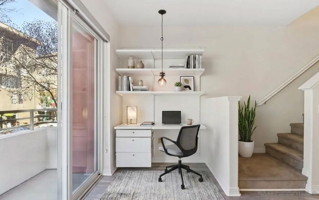 Rarely available live/work opportunity in the heart of Little Italy. This unique Shopkeeper-style property offers a street-level commercial space with an adjoining two-bedroom, 2.5-bath townhome-style residence above"”ideal for owner-users, creatives, or investors seeking versatility and income potential. The ground-floor commercial space, currently rented, approx 600 sq ft, includes a half bath and interior stairs leading to the residence. A lockable door separates the two spaces. The residential condo is light and bright, featuring a formal entry and an open-concept layout with a spacious kitchen, living, dining, and office area. This level also includes a convenient half bath and opens to a generous balcony with city views. Upstairs, the primary suite offers a walk-in closet with custom shelving and a well-appointed bathroom with a walk-in shower. The second bedroom is also en suite, complete with a shower/tub combination, while hallway storage cabinets provide added functionality. Additional highlights include in-unit laundry and two side-by-side parking spaces. Located within Village Walk, a charming community inspired by the colors and textures of Burano, Italy, residents enjoy courtyards, piazzas, fountains, a fitness center, and a community room. Step outside to experience the very best of Little Italy"”top-rated restaurants, boutiques, coffee shops, nightlife, and the renowned Little Italy Farmers Market. Just blocks away, enjoy scenic harbor walks and bay views, with easy access to the Marina District, Gaslamp Quarter, East Village, Petco Park, and The Rady Shell.
