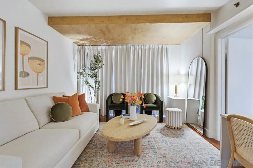 Sophisticated and serene, this private and quiet 4th-floor residence has been thoughtfully upgraded and features all-new LG appliances (Sept. 2024), including an induction range, refrigerator with ice maker and filtered water, microwave, quiet dishwasher, and in-unit washer and dryer"”all included. Additional updates include a new garbage disposal (2026), hardwood flooring in the main living areas, travertine bedroom flooring, fresh paint, custom ceiling details, built-in shelving, light dimmers, blackout drapes, air conditioning, and a custom Elfa closet system with lighting. The upgraded kitchen showcases modern cabinet hardware, trash pull-out, and contemporary lighting. The bathroom features new fixtures, a large modern mirror, shelving, luxury filtered shower head, and dimmer lighting for a spa-like feel. Acqua Vista delivers resort-style amenities including valet parking, rooftop pool and spa, fitness center, BBQs, fire tables, EV charging, Amazon lockers, bike storage, full-time security, 24-hour concierge, and an on-site HOA manager, with additional parking available. Just steps from the Little Italy Farmers Market, top-rated dining, and the waterfront, this home is ideal as a primary residence, second home, or investment opportunity.