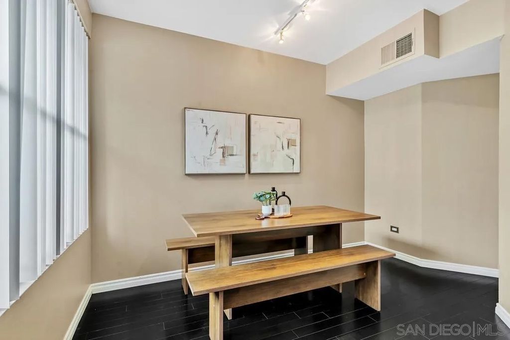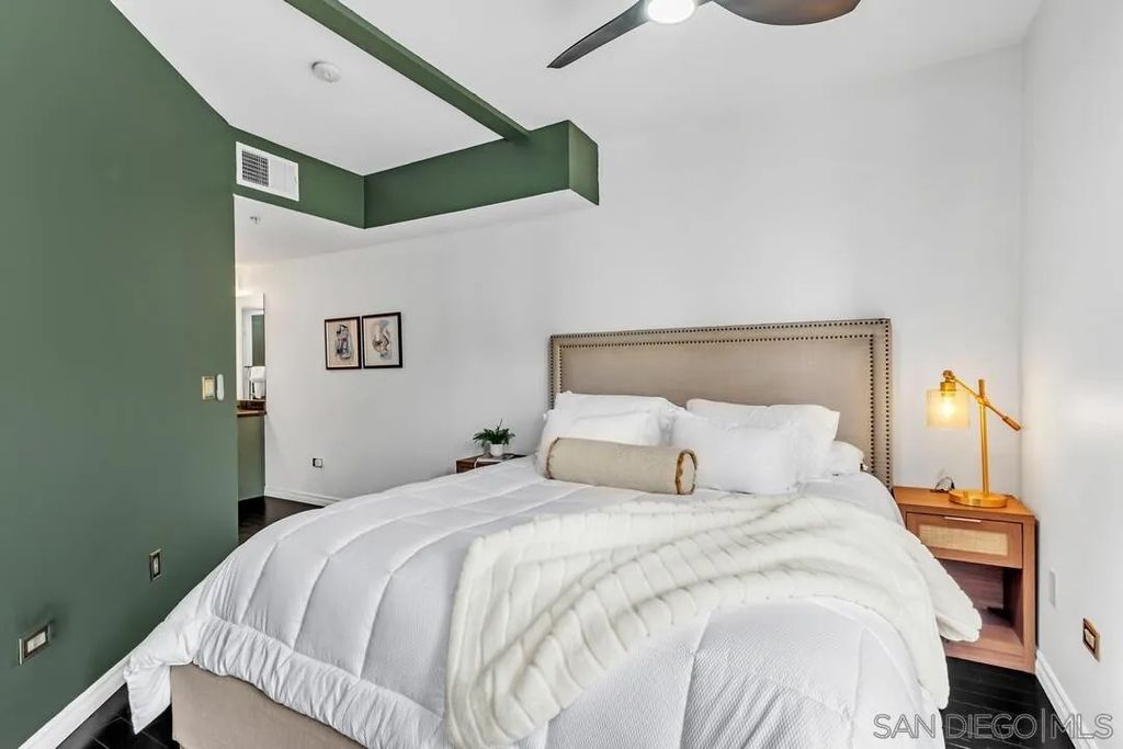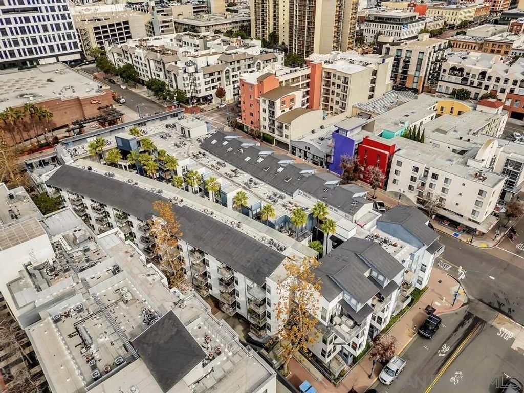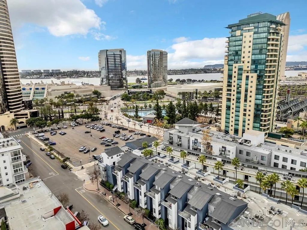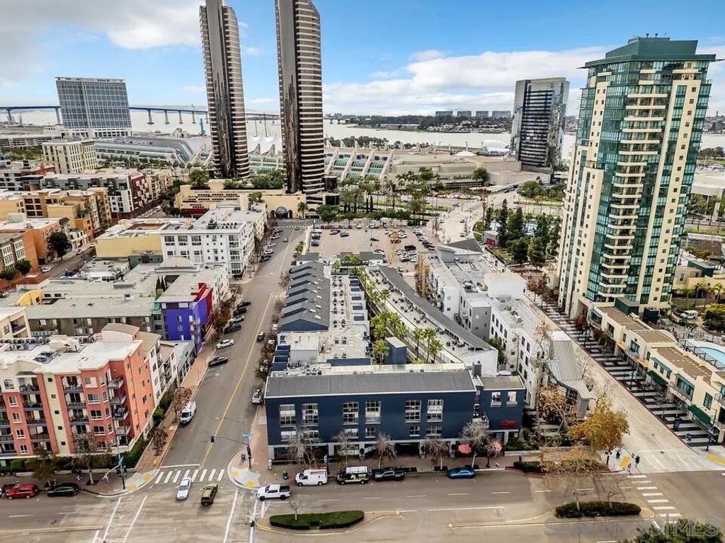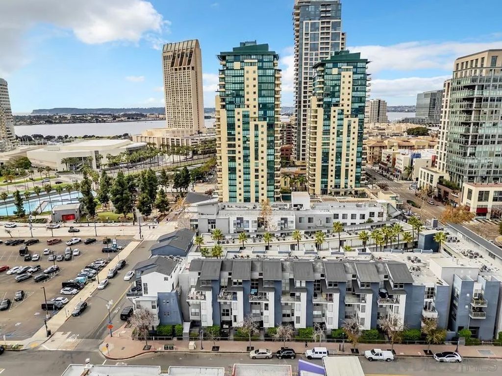 Welcome to a rare ground-level townhome-style residence offering privacy, modern style, and the ultimate Downtown San Diego lifestyle in the heart of the Marina District. Just steps from the waterfront, Seaport Village, the Gaslamp Quarter, Petco Park, and the Convention Center, this location puts you in the center of everything downtown has to offer. Trendy interior paint and updated finishes create an inviting contemporary feel throughout. The open living space flows seamlessly from the living area to the kitchen, ideal for entertaining and everyday living. A small personal outdoor patio offers the perfect spot to enjoy morning coffee or evening relaxation. A half bathroom downstairs and full sized in home laundry add convenience. Upstairs are two spacious primary suites, each with an attached bathroom and walk in closet. Both offer views of downtown, and one features a dedicated nook perfect for a home office or reading space. Wood flooring and granite counters complete the modern design. A standout feature is the rare opportunity for two gated garage parking spaces, a true luxury in Downtown San Diego condo living. The Atria community offers secure access, a gym, business center, computer room, and rooftop deck with BBQ and fire pit. Broker and Broker Agents do not represent or guarantee the accuracy of the square footage, permitted or unpermitted space, bd/ba count, lot size/dimensions, schools, or other information concerning the conditions or features of the property. Buyer is advised to independently verify the accuracy of all information through personal inspection & with appropriate professionals to satisfy themselves.