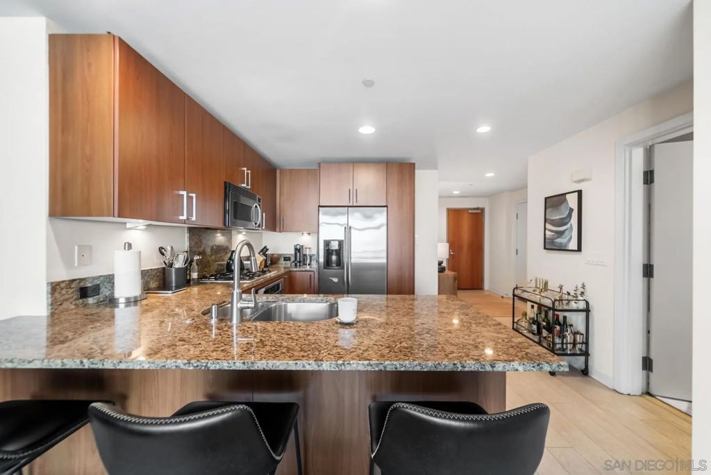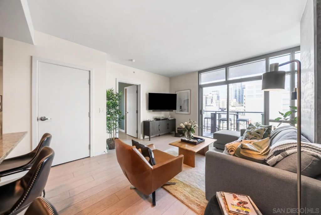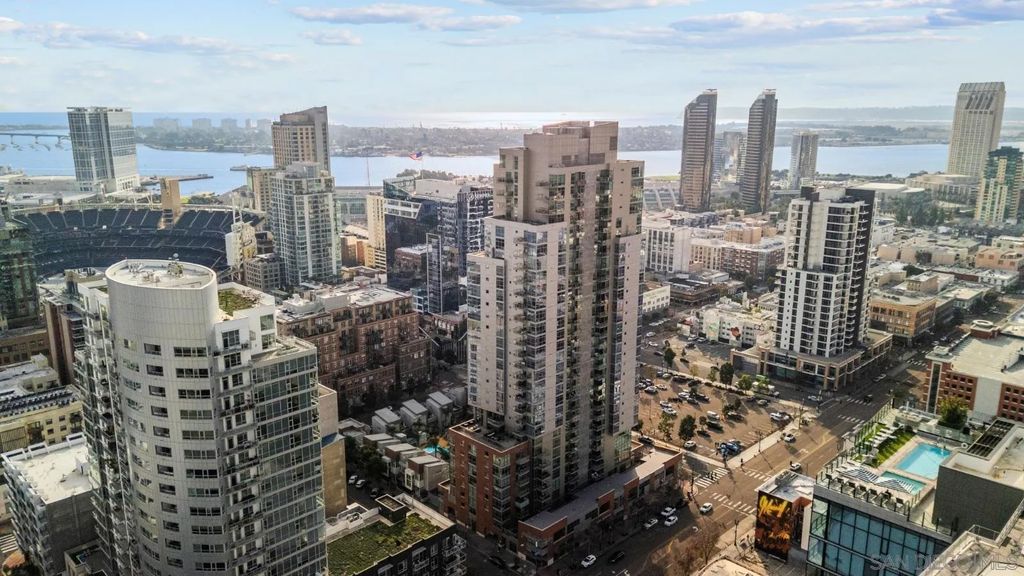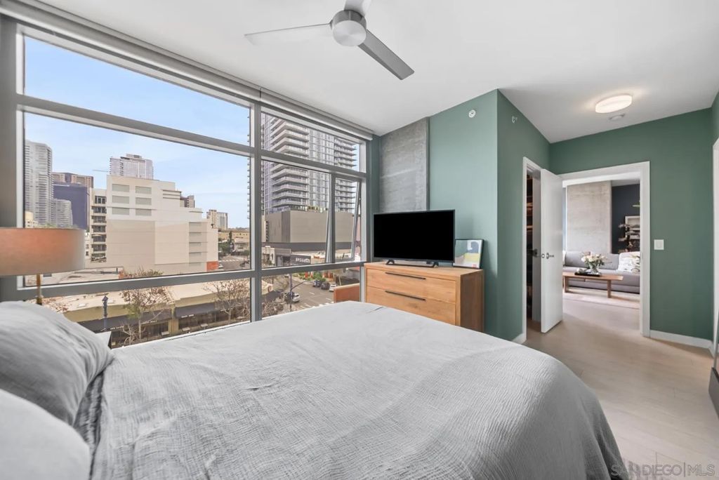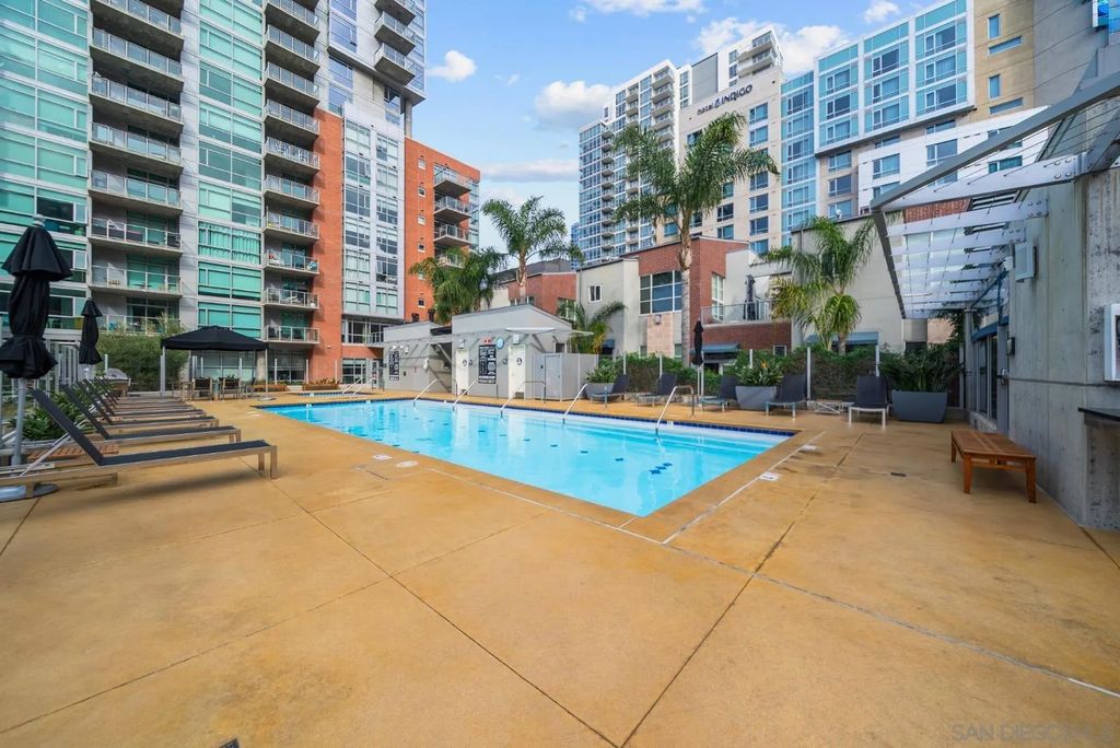 "The Mark" sets the standard for urban living in Downtown San Diego. Located just one block from Petco Park, the building offers a resort-style pool and spa, fitness center, conference room, and on-site management, maintenance, and security. A massive interior courtyard with BBQ and pizza oven completes the experience. Residence 504 features an open-concept layout with 11-foot ceilings, floor-to-ceiling windows, exposed concrete accents, waterproof vinyl flooring, and a private balcony showcasing striking views of the San Diego skyline. Just steps to the Gaslamp Quarter, Convention Center, and San Diego Bay. One parking space and an oversized 8' x 7' storage room are included.