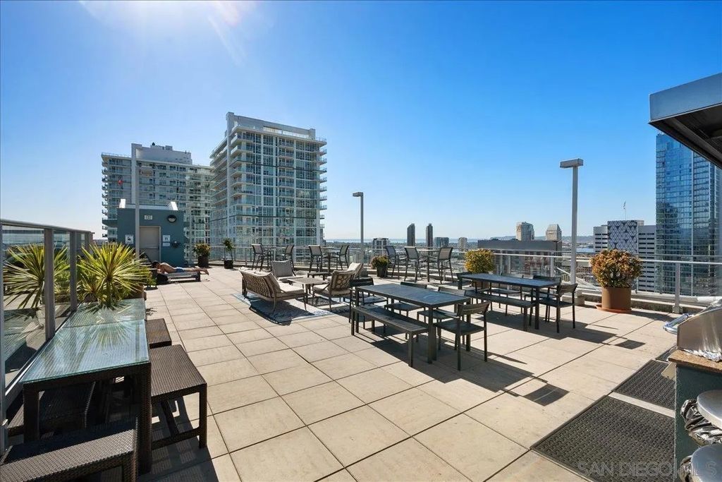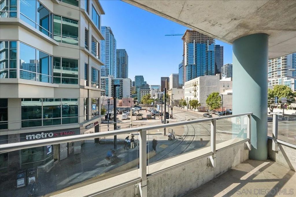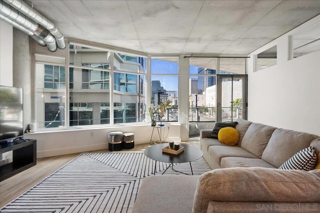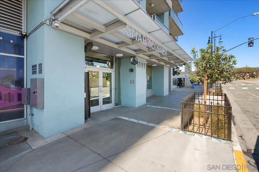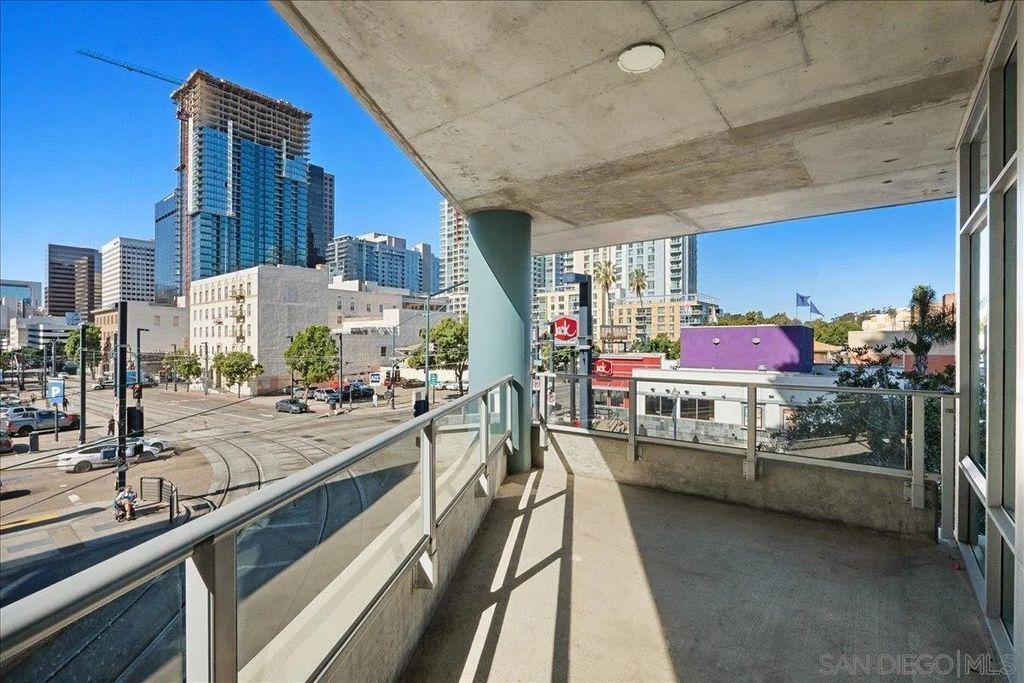 Highly desirable corner residence in the Smart Corner building showcasing floor-to-ceiling windows and abundant natural light in the heart of East Village. One of the largest floor plans in the community, this industrial-inspired 2-bedroom, 2-bath condo offers approximately 1,284 sq ft with a modern open layout designed for upscale urban living. The bright kitchen with island flows seamlessly into the main living space, creating an ideal setting for entertaining, while the covered patio and in-unit laundry provide everyday convenience. The building features convenient ground-floor retail including 7-Eleven and Subway, adding everyday accessibility right at your doorstep. Ideally located within walking distance to the Gaslamp District, Petco Park, Balboa Park, dining, nightlife, and trolley access, this residence captures the true downtown lifestyle. The garage includes two tandem parking spaces and direct access toward Hwy 163 and Interstate 5 for effortless commuting. HOA amenities include a fitness center, panoramic rooftop deck with spa and BBQ grills, and sweeping views of downtown, Coronado, and the surrounding coastline. A prime opportunity for luxury city living or investment in one of San Diego's most vibrant neighborhoods.