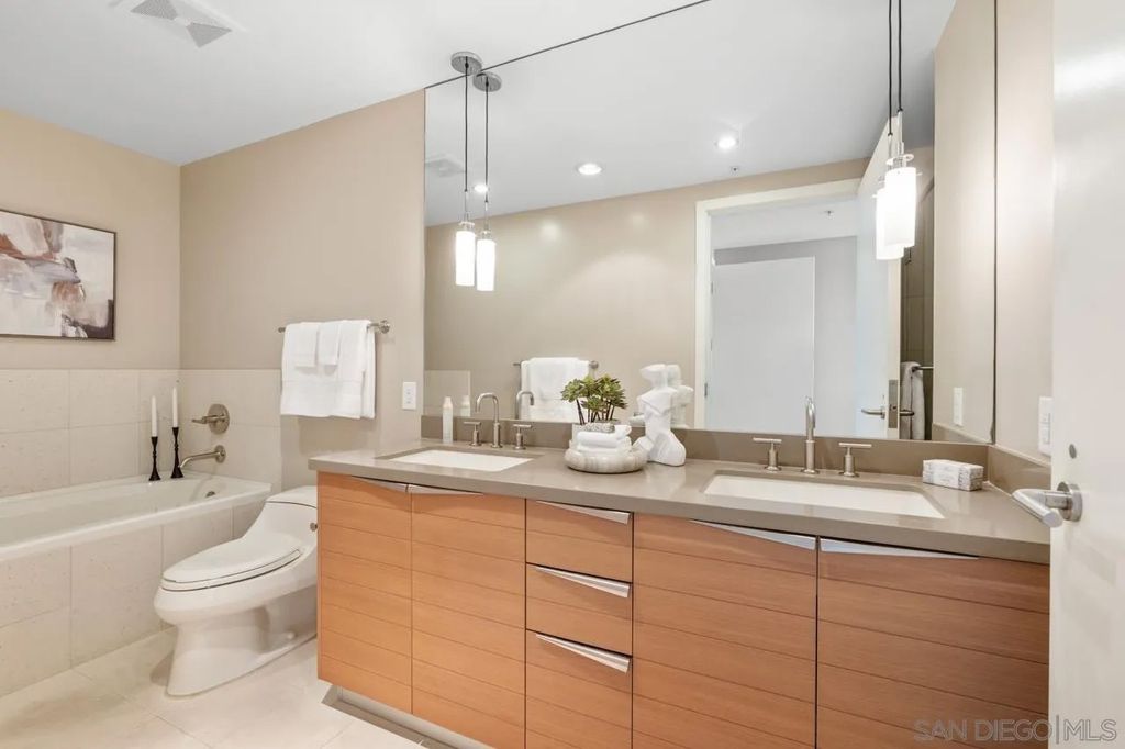 Recently appraised over $1,500,000, this impeccably maintained north-facing residence at Bayside is a rare opportunity to own in one of Downtown San Diego's most respected luxury high-rise communities by Bosa. The highly desirable 06 floor plan is thoughtfully designed, featuring generous closet space, a formal dining area, and an expansive patio, perfect for enjoying sunset views of the San Diego bay. In addition, Unit 706 includes a tandem parking space and a dedicated storage unit. Bayside is known not only for its full suite of resort-style amenities including a pool and spa, fitness center, steam room, sauna, wine room, resident lounge, library, and 24-hour concierge, but also for its exceptional sense of welcome. From the attentive staff to the security team greeting residents at the garage entrance, Bayside truly feels like a home away from home in paradise. Recent renovations have further elevated the experience, with beautifully redesigned lobby and hallway spaces that feel modern and elegant. Ideally situated just steps from the San Diego Bay, Waterfront Park, and the dining and cultural scene of Little Italy, this location offers exceptional convenience in the heart of downtown.