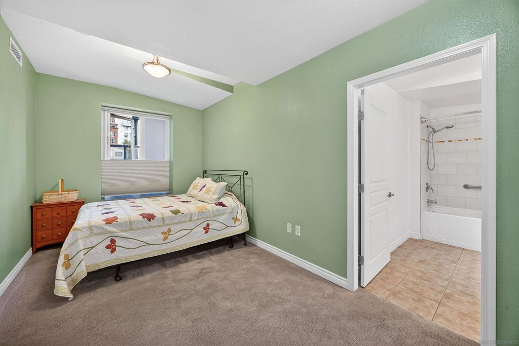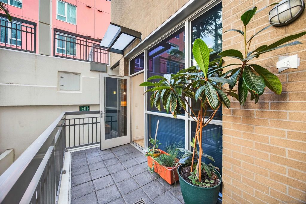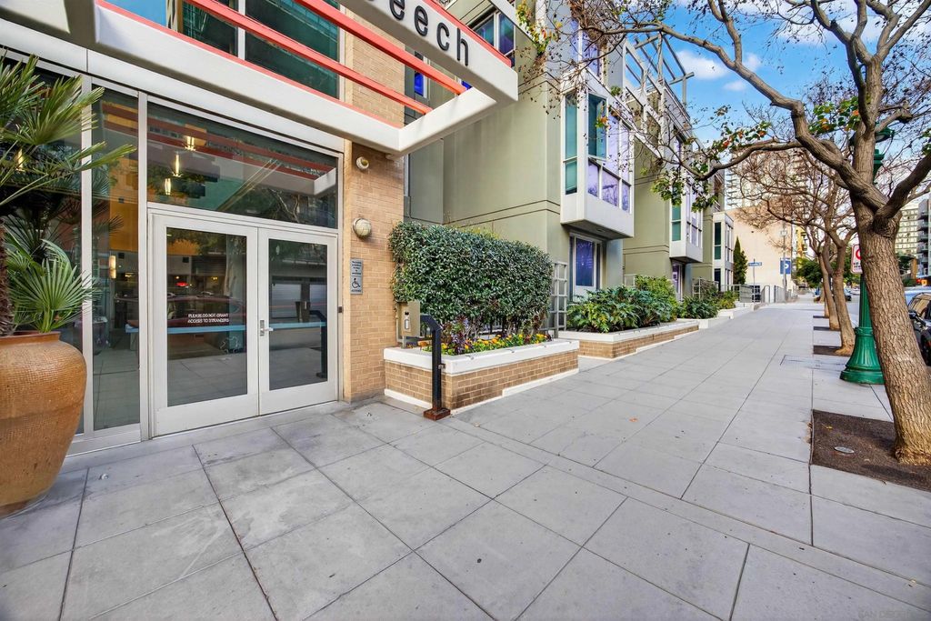 Step into the vibrant Little Italy lifestyle with this one bedroom, two bathroom ground level condo featuring two private entrances with secure direct access to State St for added convenience. Just 1.5 blocks from your front door to the Farmers Market, the Little Italy dog park, and walking distance to the entirety of Little Italy, including restaurants, cafes, bars, boutique shops, and the waterfront, with the soon to open Whole Foods just around the corner. Enjoy effortless city living in this unique floor plan with an oversized bedroom boasting an en-suite bath, plus a separate half bath that offers added comfort and privacy for guests. Stainless steel appliances, ceramic tile flooring, a brand new stove, Bosch dishwasher, in-unit washer and dryer, and forced air heating and AC provide everyday ease. The spacious private patio not only offers a quiet retreat for morning coffee or evening relaxation, but also serves as a secondary private entrance, creating seamless indoor-outdoor living and ideal access for pets or visitors. This unit comes with one assigned parking space in a secure underground garage. The La Vita community features a bicycle room and access to resort-style amenities including a pool, spa, BBQs, gym, and inviting common areas for gatherings with friends and family, all within a professionally managed HOA. Building is VA and FHA approved! Experience the ultimate blend of comfort, convenience, and urban coastal charm in one of San Diego's most sought-after neighborhoods.