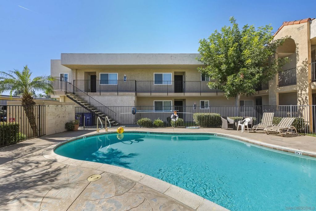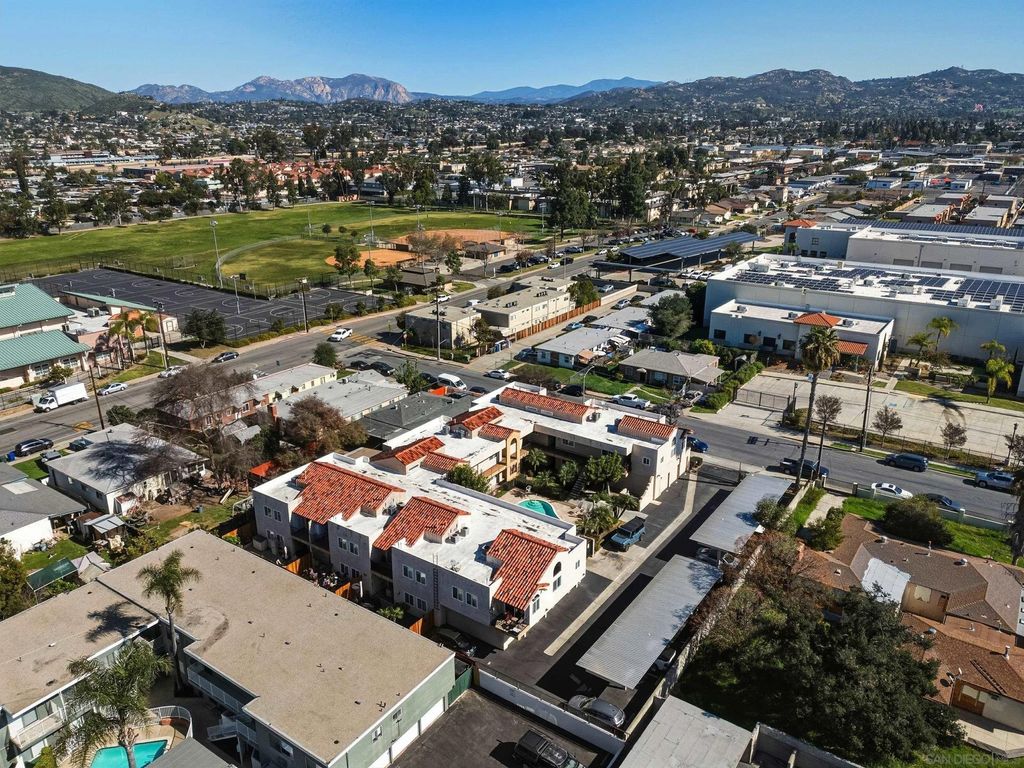 Welcome to a hidden oasis in the heart of El Cajon. This upstairs, single-level corner unit is tucked inside a private gated community and offers added privacy with its own nearby stair entry. Vaulted ceilings and abundant natural light create an open, airy feel throughout the home. The floor plan features two bedrooms and two full bathrooms, along with a well-appointed kitchen complete with stainless steel appliances, granite countertops, and refrigerator included. Enjoy indoor-outdoor living from the private balcony, plus the convenience of in-unit laundry, air conditioning, and ample storage. Parking is a breeze with one garage space, one assigned parking space, and plenty of street parking nearby. Residents enjoy access to a central courtyard pool and a prime location close to Parkway Plaza, major freeways, local parks, and walking distance to El Cajon Middle School. A rare opportunity to enjoy privacy, convenience, and community all in one.