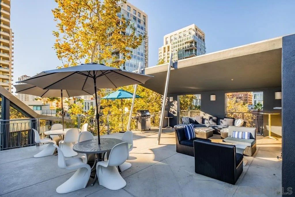 Experience urban living in the heart of the Marina District at the highly desirable ATRIA community, designed by the well-respected architectural team of Rob Wellington Quigley. This beautifully fully furnished upgraded studio is perfectly situated just steps from the Gaslamp Quarter, Petco Park, Seaport Village, the Convention Center, Ralphs grocery, and San Diego's finest dining and waterfront attractions. Offering recent upgrades, this residence showcases new luxury vinyl plank flooring, fresh designer paint, and updated kitchen and bathroom cabinetry. The kitchen is enhanced with a brand new LG stainless steel refrigerator and stove, complemented by a new in-unit washer/dryer, new light fixtures, and stylish hardware throughout. Additional improvements include new kitchen and shower faucets, a refinished tub, new medicine cabinet, contemporary ceiling fan, and a Nest thermostat for modern comfort and efficiency. Enjoy granite countertops, stainless steel appliances, a spacious walk-in closet, and central air conditioning. One assigned underground parking space included. ATRIA offers premier amenities including a rooftop BBQ and gathering deck, media room, and 24-hour fitness center, perfect for those seeking a vibrant, walkable, and sophisticated coastal lifestyle. This beautifully fully furnished upgraded studio is perfectly situated just steps from the Gaslamp Quarter, Petco Park, Seaport Village, the Convention Center, Ralphs grocery, and San Diego's finest dining and waterfront attractions.