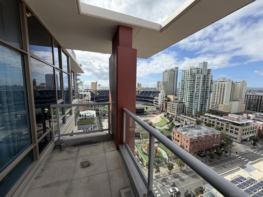 PREMIERE PETCO VIEW CONDO... See Home Plate & watch the game! Hear the crowd and relax in the comfort of your own home or walk across the street and YOU'RE IN THE BALLPARK! Stunning bay, city & ballpark views from TWO private balconies AND from inside this Penthouse residence... Definitely one of the most DRAMATIC & EXCITING views you'll ever see! Dynamite location in East Village, walk to everything. Arguably one of the BEST POSITIONED buildings in East Village and clearly a FAN FAVORITE! See Supplement... Well-appointed 2BD/2 BA with slab granite counters, stainless appliances, TWO generous balconies and washer/dryer in unit. Desirable location in East Village - Across the street from upscale fitness center, walk to coffee, restaurants, shopping and entertainment. Secure building with fitness center, community room, rooftop BBQ area that features large patio and views into Petco. TWO parking spaces in secure underground garage and storage area included. Rare opportunity!