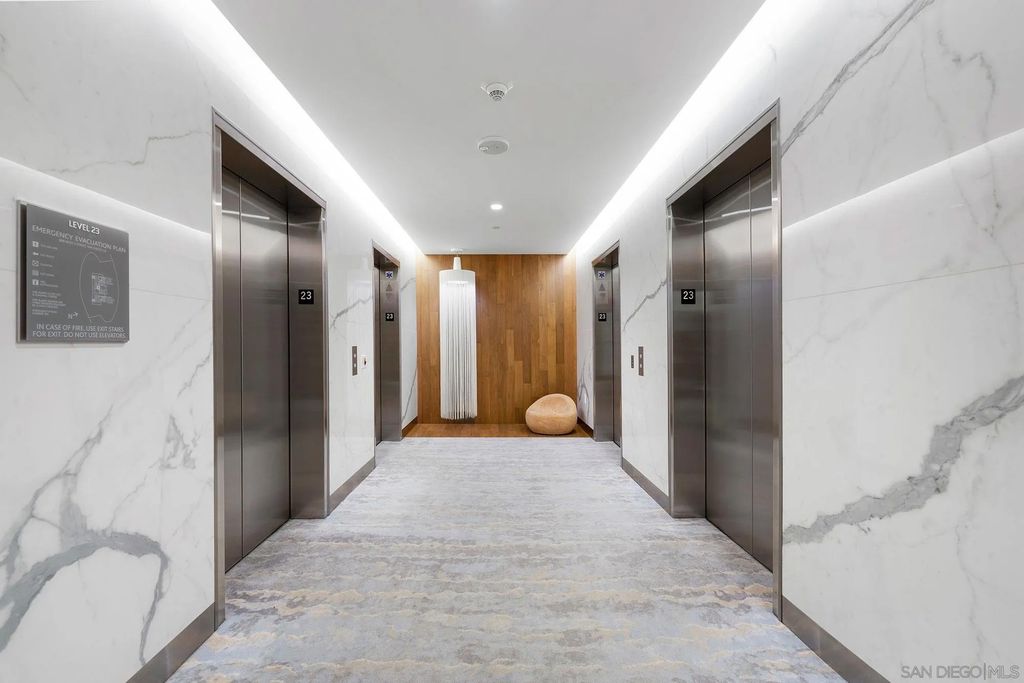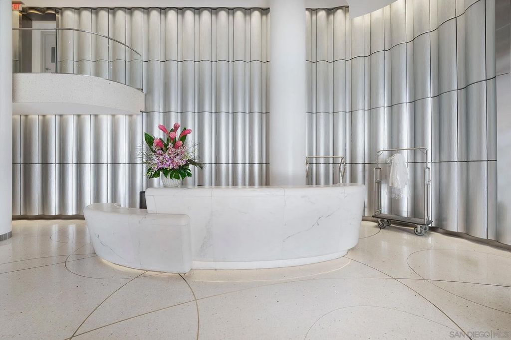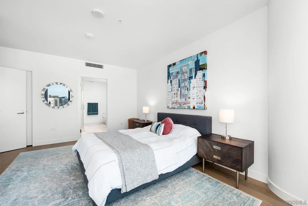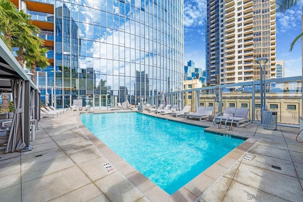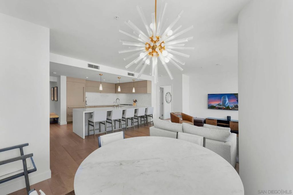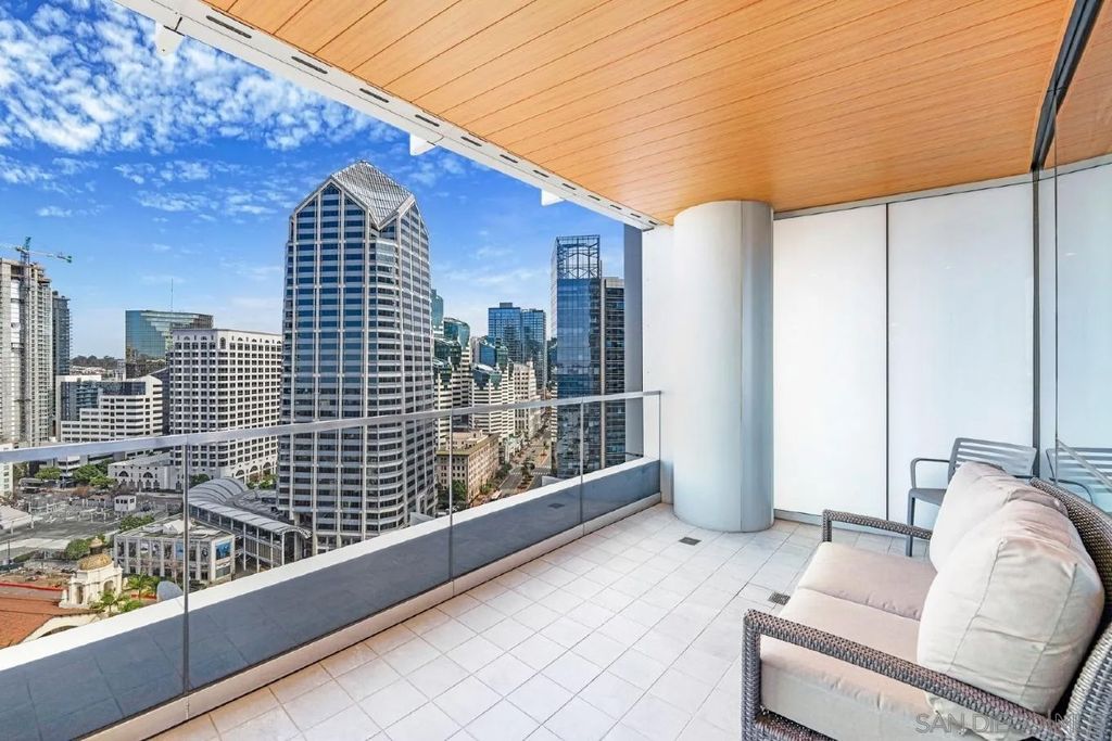 Experience modern luxury in this stunning 2-bedroom, 2-bathroom condo with sweeping views of the San Diego skyline, bay, and marina. Situated on a premier high floor in the prestigious Pacific Gate, this home combines elegance with comfort. Beautifully crafted details and modern finishes flow throughout, highlighted by wide plank hardwood floors and expansive floor-to-ceiling windows that invite natural light in. The residence features a private balcony perfect for morning coffee or an evening glass of wine, flowing open-plan living and dining spaces, and a chef-caliber kitchen with a breakfast bar. The master bedroom includes a five-fixture bathroom and a large walk-in closet, while the entry foyer offers a spacious coat closet and a convenient laundry closet. Whether for full-time living or a spectacular city escape, this home provides a rare opportunity to live atop San Diego with every amenity at your fingertips.