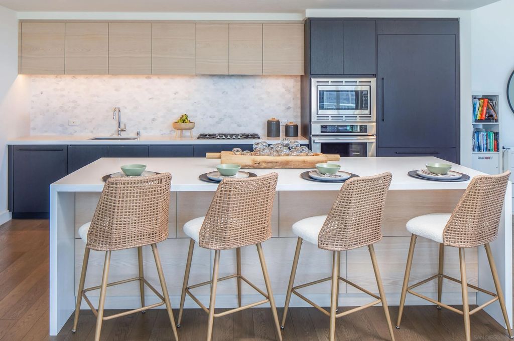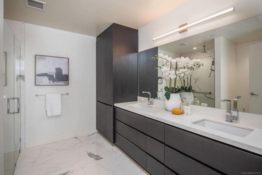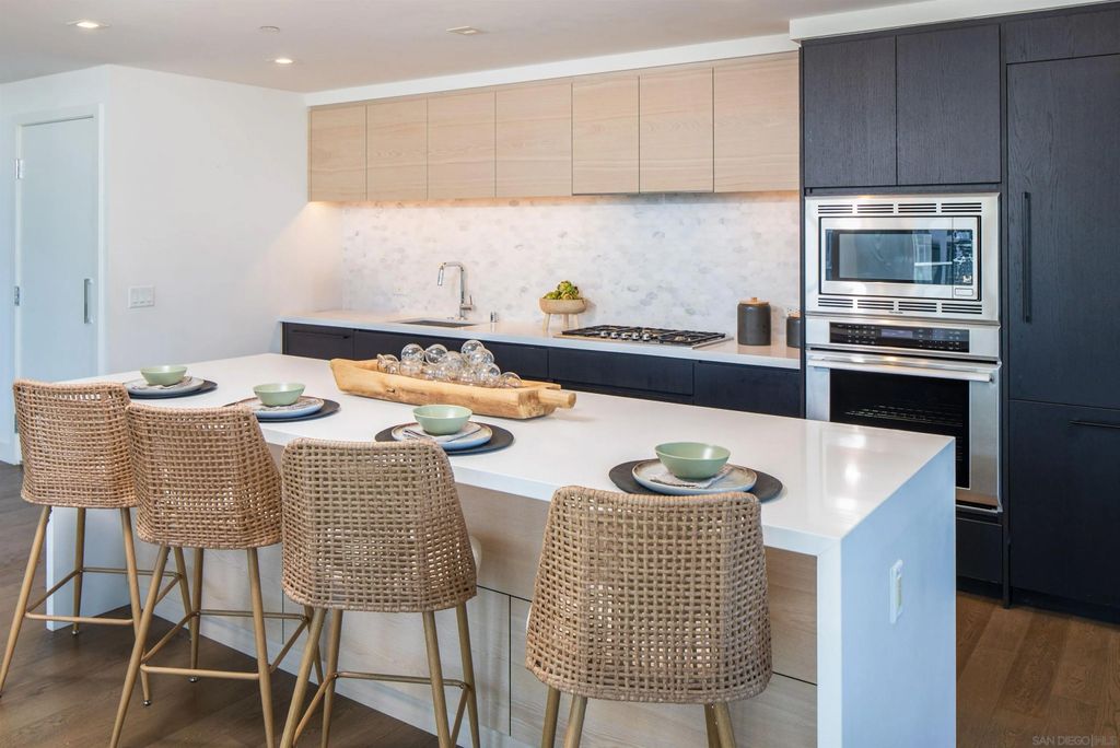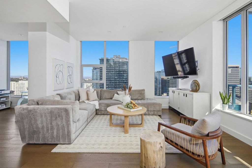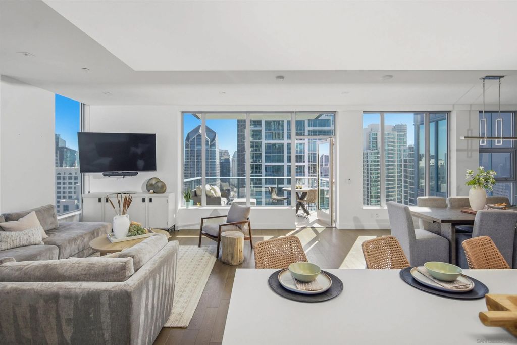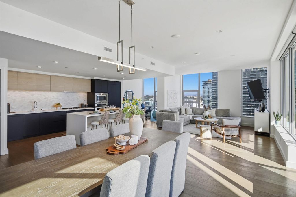Savina #3005 is a rare 30th-floor, southeast-corner home with panoramic views from Balboa Park to the skyline, the Bay, and Point Loma. This particular home has higher than average ceiling heights at approximately 9'4", which make the home feel very open. The oversized kitchen and living area spans about 32 feet wide, wrapped in walls of windows with a den that adds flexible space for an office or lounge, and it even includes a true pantry"”a hard-to-find feature Downtown. To top it off, you get three parking spaces, which is very rare for Downtown San Diego. Completed in 2019 by Bosa Development, Savina is a sleek 36-story high-rise with 285 residences and resort-style amenities including a pool terrace with cabanas, fitness center with yoga terrace, steam room and sauna, and a resident lounge with kitchen, plus a rooftop pet retreat and bike storage with a tune-up station. Designed by Amanat Architects and located at 1388 Kettner Blvd, San Diego, CA 92101, Savina sits at the crossroads of the Columbia District and Little Italy, just a short stroll to the waterfront and Embarcadero, Little Italy's dining and shops, and convenient transit at Santa Fe Depot"”with the Gaslamp Quarter and Seaport Village only minutes away.
