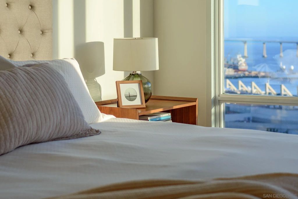 Located on the SW corner of the prestigious Executive 18th floor, this premier 2-bed, 2.5-bath residence at The Pinnacle Marina Tower showcases breathtaking sit-down views spanning the San Diego Bay and Pacific Ocean. Expansive 10+ foot ceilings, elegant marble floors, and dramatic floor-to-ceiling windows flood the open-concept interior with natural light, perfectly framing the ever-changing coastal panorama. The chef's kitchen features Sub-Zero and Bosch appliances, sleek Snaidero Italian cabinetry, wine cooler, and refined finishes throughout. Two private balconies offer ideal vantage points for spectacular views of the ocean and city- perfect for morning coffee at sunrise and evening sunsets. The combination of floor plan, elevation, and southwest orientation is among the most desirable in all Downtown San Diego"”and rarely becomes available. Situated in the heart of the Marina District, The Pinnacle delivers an unmatched urban coastal lifestyle surrounded by San Diego's most iconic destinations. Just moments away are Waterfront Park, Seaport Village, The Headquarters at Seaport, and the Rady Shell at Jacobs Park"”home to world-class performances by the San Diego Symphony. Nearby you will also find The Gaslamp Quarter, Little Italy, and Petco Park - perfect for dining, shopping, nightlife, and entertainment. Residents enjoy a full suite of resort-style amenities including 24-hour concierge and security, a state-of-the-art fitness center with steam room and sauna, heated Olympic-style pool and jacuzzi, guest suite, social lounge, conference room, and an outdoor BBQ area. Complete with two secured parking spaces and additional storage, this exceptional residence offers a rare blend of luxury, convenience, and refined Downtown sophistication.