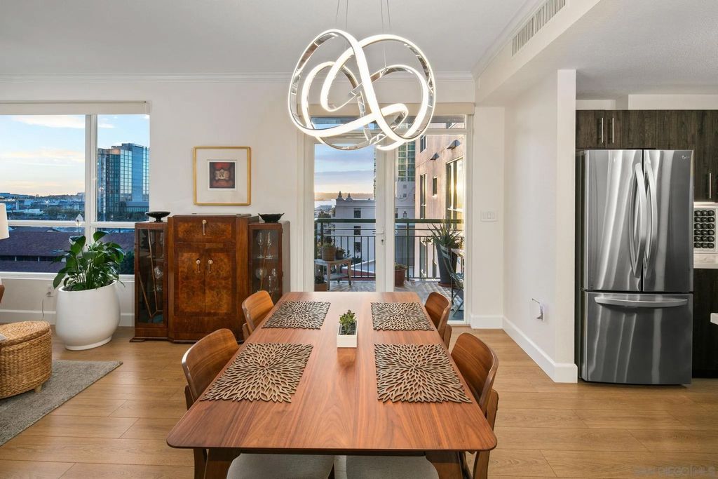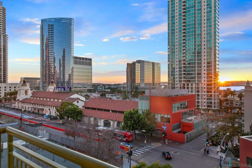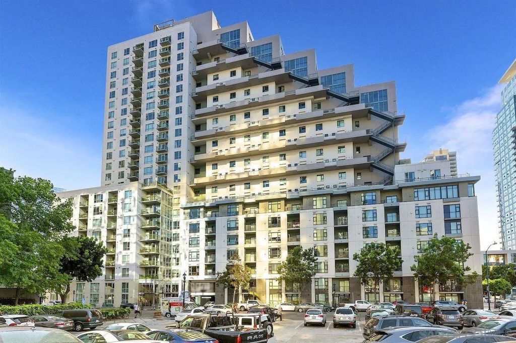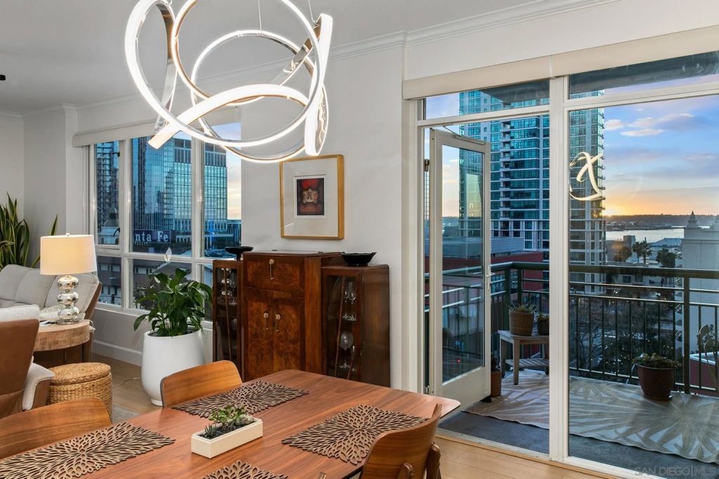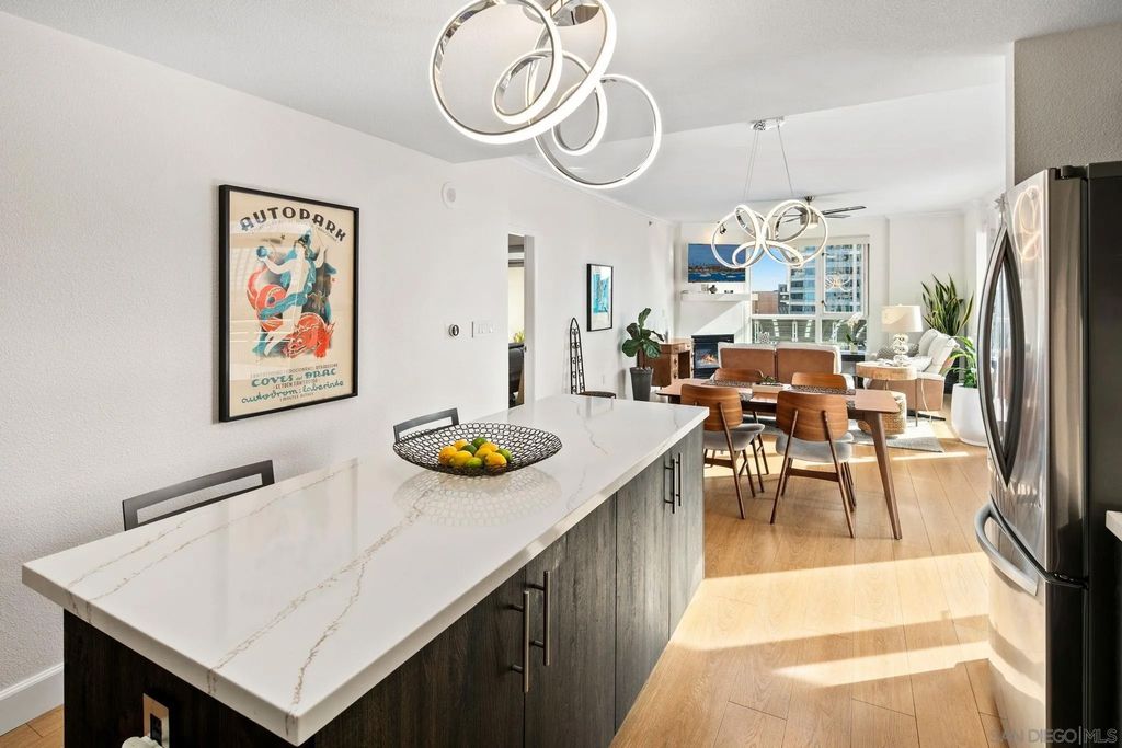 Prime southwest corner residence at Treo in the prestigious vibrant Columbia District/Little Italy, showcasing sweeping panoramic views of the downtown skyline and sparkling bay and waterfront. Offering approximately 1,441 square feet, this beautifully remodeled 2-bedroom, 2-bath plus 3rd room den/office floor plan is elevated by its desirable corner positioning and two private balconies that capture water and city views plus natural light throughout. Designed as a true turnkey opportunity, every detail has already been thoughtfully curated. Luxury vinyl plank flooring flows seamlessly throughout the home, complemented by a stunning remodeled kitchen with sleek quartz countertops, tile backsplash, designer cabinetry and stainless steel appliances. The upgraded bathrooms feature modern finishes and clean, contemporary design. Fresh interior paint enhances the light and airy aesthetic. Two secured parking spaces and dedicated storage add exceptional convenience. Ideally positioned in one of Downtown San Diego's most walkable neighborhoods, residents enjoy effortless access to the Waterfront Park, Little Italy's renowned dining scene, the Embarcadero, Seaport Village, Santa Fe Depot, and premier shopping and entertainment. Treo offers resort-style amenities including a lap pool and spa, state-of-the-art fitness center, resident lounge, outdoor BBQ area, on-site management, and secured entry. With its prime location, impeccable condition, and exceptional lifestyle appeal, this residence truly embodies the best of urban luxury living.