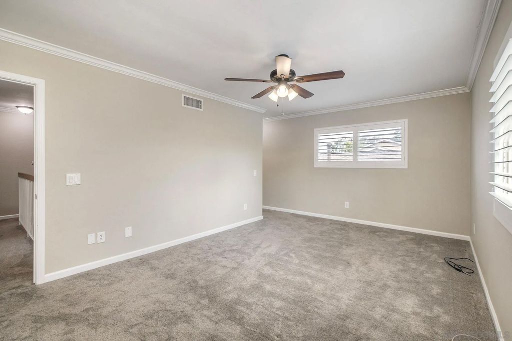 Welcome to this beautifully updated 3-bedroom, 2.5-bath two-story townhome located in the heart of Poway. This centrally located home offers a spacious and functional layout, perfect for comfortable everyday living. The interior features crown molding in the living room and primary bedroom, a walk-in closet in the primary suite, upgraded bathrooms, newer carpet, dual-pane windows, and a newer HVAC system for year-round comfort. Plantation shutters and ceiling fans throughout add both style and efficiency. Enjoy the convenience of direct-access garage entry and a well-designed floor plan that blends comfort and practicality. A wonderful opportunity to own a move-in ready home in a prime Poway location close to shopping, dining, and top-rated schools.