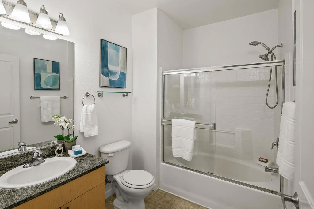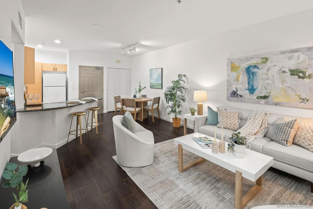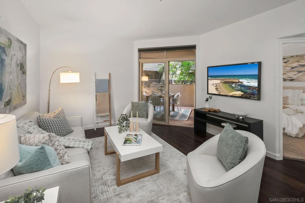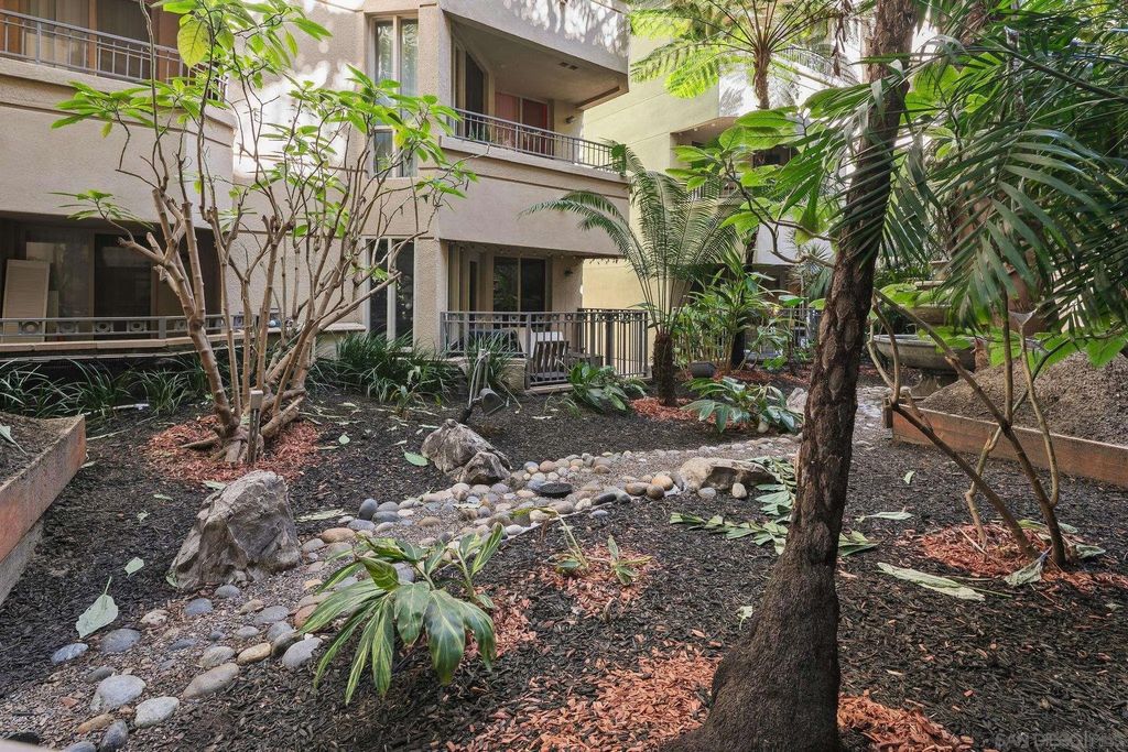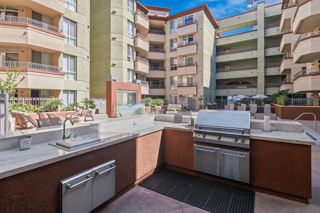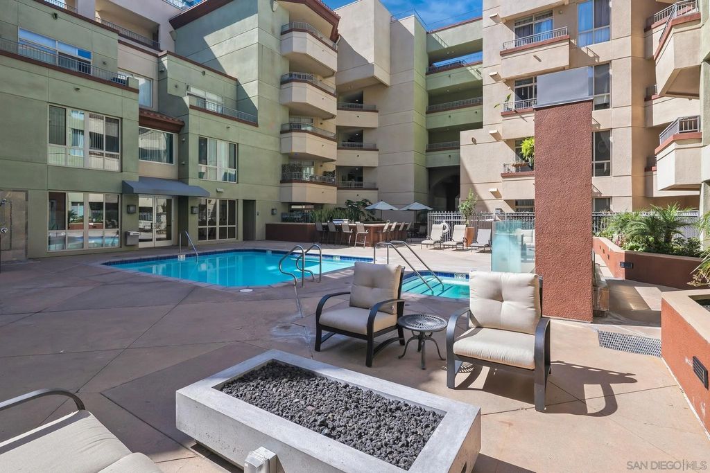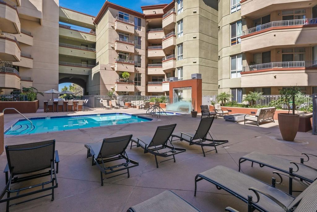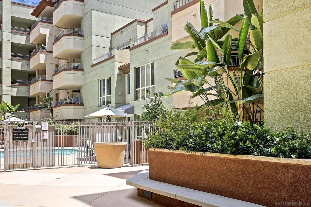 Welcome to urban living at Piazza Palermo in Downtown San Diego's Little Italy most desirable neighborhood! This 1-bedroom, 1-bathroom residence features an open-concept floorplan designed for comfort and functionality. The spacious living and dining area flows onto a private patio with views of the peaceful interior atrium. Located in a secure, well-maintained building with HOA, residents enjoy access to a variety of resort-style amenities including a heated pool, spa, fitness center, and controlled access for added peace of mind. Just steps from Little Italy, you will be walking distance to some of San Diego's best restaurants, coffee shops, boutiques, and entertainment. Enjoy weekend strolls to the Mercato Farmers Market or take advantage of the nearby waterfront and cultural attractions. With easy access to freeways, commuting and exploring all that San Diego has to offer will be effortless. Perfect for those seeking an urban retreat or low-maintenance investment property in a highly sought-after location - Don't miss this opportunity!