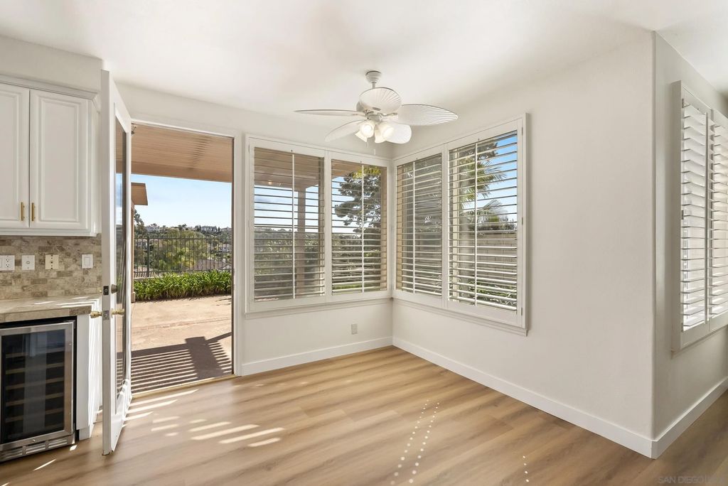 Step into this exceptional Aviara home and experience the feel of a luxury retreat. With stunning mountain views in the highly sought-after Sandpiper neighborhood, this residence is tucked on a quiet cul-de-sac. Soaring ceilings and designer finishes, new LVP throughout, new HVAC system, new wine cooler. The open-concept kitchen is ideal for everyday living and entertaining, while a downstairs bedroom and full bath add flexibility. The beautifully landscaped backyard is perfect for gatherings and outdoor enjoyment.