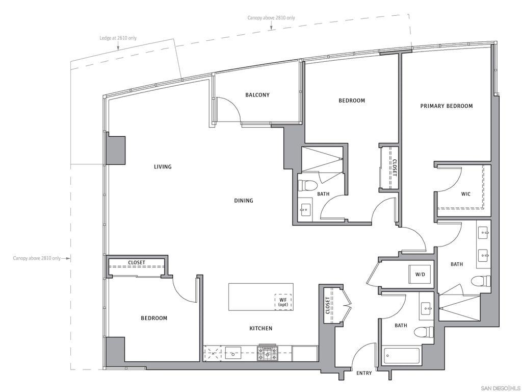 Welcome to Andia by Bosa Development. Now selling and already under construction, Andia is the first new Downtown San Diego condominium high-rise in nearly 8 years. Featuring resort-like amenities and sophisticated interior design, the residences at Andia offer a seamless blend of style and comfort with the city as your backdrop. Residence 2810 is a southwest corner 3 bedroom, 3 bathroom home boasting a split bedroom layout, integrated Bosch kitchen appliances with Zephyr hood, kitchen island with waterfall edge, polished chrome Kohler fixtures, Caesarstone quartz countertops with polished tile backsplash, primary bathroom with dual vanity sinks and glass enclosed shower, walk-in closet, front-loading full-size washer and dryer, EV charger, on-site storage locker, spacious balcony and phenomenal city & bay views. Andia by Bosa Development brings new heights to Downtown San Diego. Featuring modern design and resort-styled amenities, Andia soars 40 stories above the center of the city, showcasing 399 thoughtfully appointed 1- to 3-bedroom residences ranging in size from ~620 to ~1,729 square feet with two contemporary finish palettes. This is not an offer to sell but intended for information only. The developer reserves the right to make modification in materials, specifications, plans, pricing, designs, scheduling and delivery without prior notice. Renderings, photography, illustrations and other information described herein are representative only and are not intended to reflect any specific feature or view when built. No representation and warranties are made with regard to the accuracy, completeness or suitability of the information published herein.