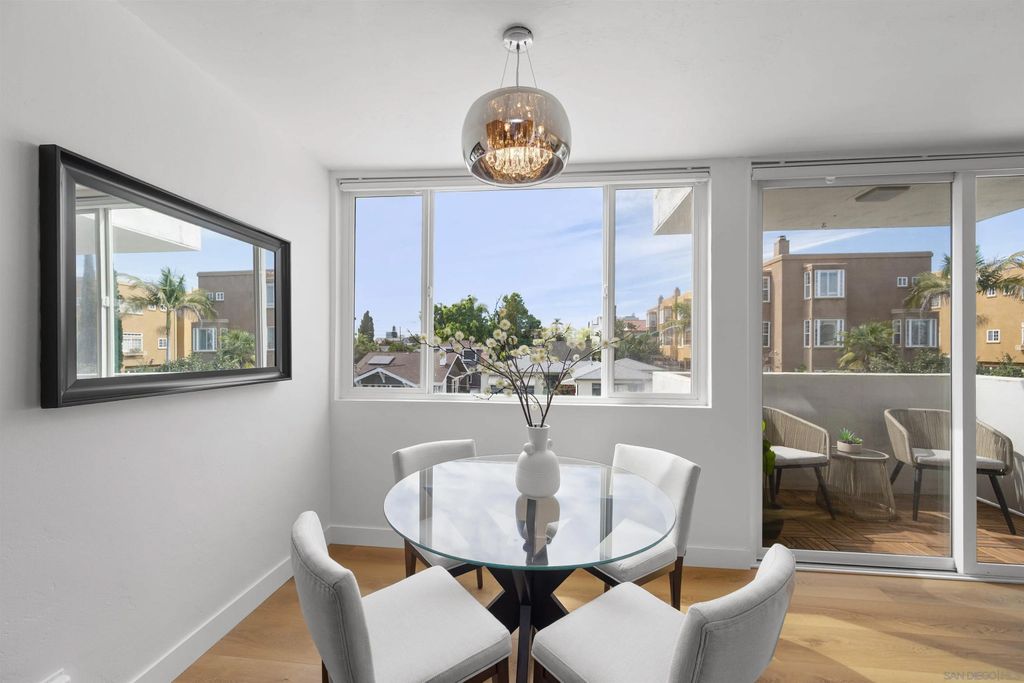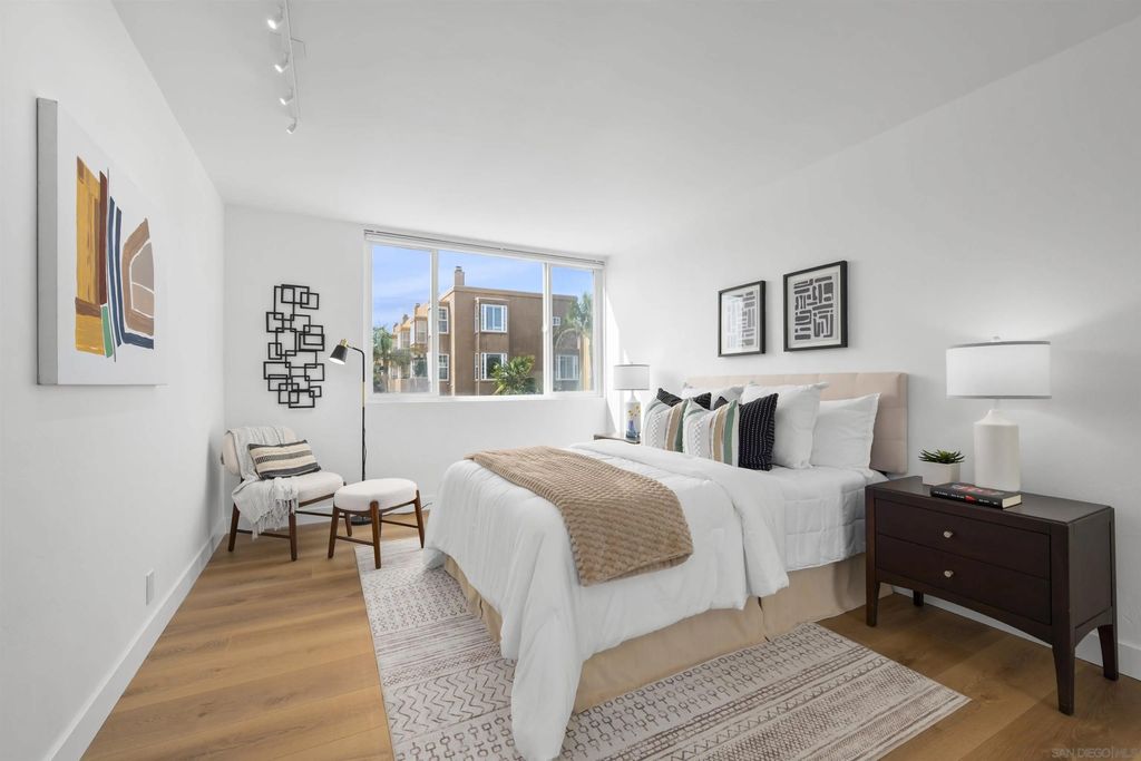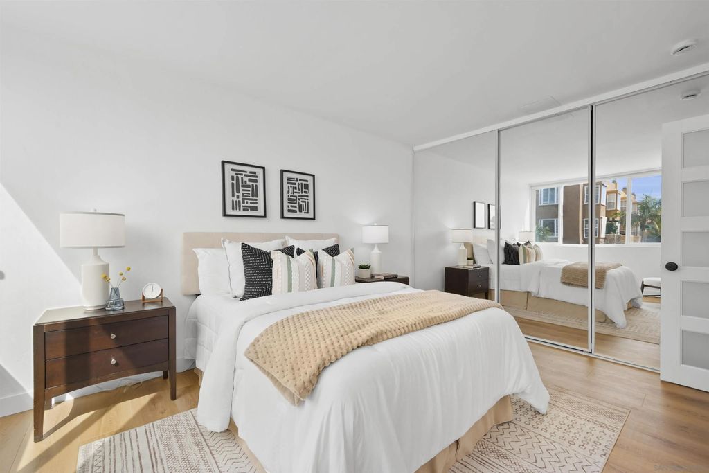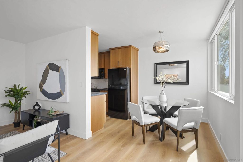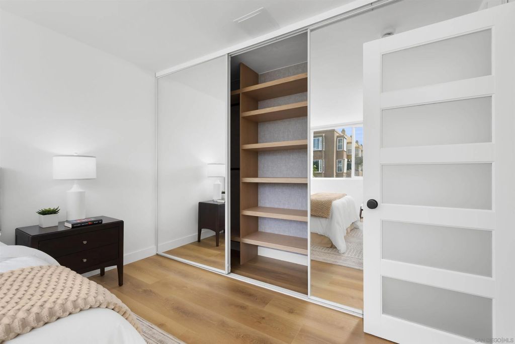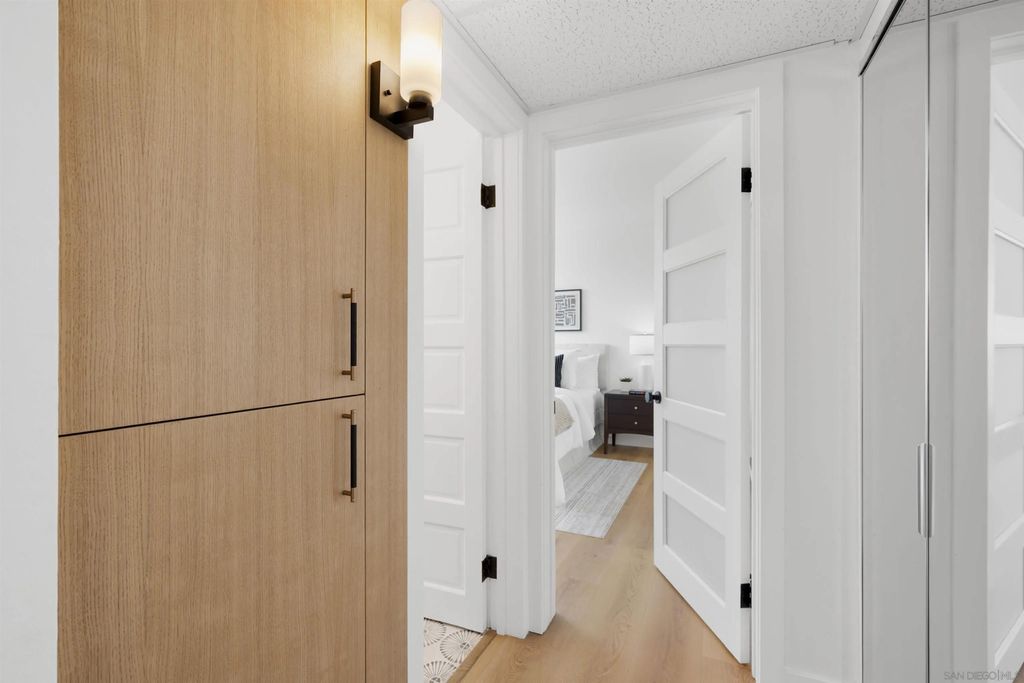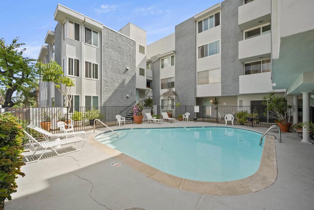 In North Park, with Hillcrest just moments away, this boutique-style building is tucked away on a quiet, low-traffic street. This bright, sunlit west-facing unit features a private balcony, perfect for taking in the views. Enjoy walkable access to cafés, restaurants, farmers markets, grocery stores, and everyday shopping in both neighborhoods, along with close proximity to Balboa Park, the San Diego Zoo, and Morley Field. Beautifully renovated, the home features light oak wood-look waterproof laminate flooring, fresh paint, updated light fixtures throughout, and an upgraded kitchen and bath. The kitchen includes a new backsplash, refrigerator, sink, faucet, updated plumbing, and new cabinet hardware. The bathroom has been fully renovated with all-new finishes. Custom built-ins provide exceptional storage, including hallway shelving and a newly added closet with built-in shelving in the primary bedroom. Community amenities include a pool, sauna, rooftop BBQ lounge with views, bike room. Beautifully renovated throughout with light-oak wood-look waterproof laminate flooring, fresh interior paint, and updated light fixtures. Located in a boutique-style building, this home offers a thoughtfully designed layout with custom built-ins for exceptional storage, including hallway shelving and a newly added closet with built-in shelving in the primary bedroom. Both the kitchen and bath were upgraded with updated plumbing and all-new fixtures. Kitchen upgrades include a new backsplash, refrigerator, sink, faucet, and cabinet hardware. The bathroom has been fully renovated with an all-new tub/shower, vanity, toilet, fixtures, and finishes. Includes one assigned parking space with easy in-building access. Window treatments on all windows. Community laundry facility available for residents.