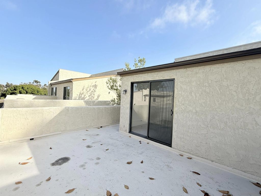 Bathed in natural light from its prime south-facing position, this spacious 4BR/2.5BA home offers a sophisticated retreat within the highly sought-after La Jolla Shores Heights community. Situated at the end of a quite cul-de-sac, the home is designed for the quintessential California weather, featuring an inviting patio and an expansive upstairs deck perfect for enjoying canyon views or a morning coffee. Inside, the living and dining rooms are seamlessly bridged by a kitchen anchored by beautiful granite countertops with tons of storage and countertop space. The main living area features a cozy fireplace, with recessed lighting and high-end remodeled upgrades throughout. There is a large patio off the living room. Upstairs the 3 bedrooms share a full bathroom. the primary bedroom has an attached primary bath with dual-sinks. Your full-sized laundry is located upstairs as well. 2-Car attached garage with built in cabinet. Incredible La Jolla location close to freeways, beaches, and all shopping. Bathed in natural light from its prime south-facing position, this spacious four-bedroom residence offers a sophisticated retreat within the highly sought-after La Jolla Shores Heights community. Situated at the end of an exceptionally private and quiet cul-de-sac, the home provides a serene escape complemented by stunning views of the lush green canyon. The property is designed for the quintessential California lifestyle, featuring an inviting patio and an expansive upstairs deck that serves as the perfect venue for canyon views or quiet morning coffee. Inside, the home boasts a thoughtful layout with separate downstairs living areas, where a formal living room and dining room are seamlessly bridged by a modern kitchen anchored by beautiful, solid granite countertops. The main living room centers around a cozy fireplace, while recessed lighting and high-end remodeled upgrades throughout the interior elevate the home's contemporary aesthetic. For ultimate convenience, the laundry facilities are located upstairs alongside all four bedrooms, and the home is packed with storage solutions, including an attached two-car garage outfitted with extensive custom cabinetry. The lifestyle afforded by this location is unparalleled, set within a secure complex that offers a rich suite of amenities including tennis and basketball courts, a swimming pool, and a children's playground. Nature enthusiasts will appreciate the immediate access to scenic walking trails and tree-lined paths just steps from the front door. Perfectly positioned for both work and play, the home is only five minutes from the pristine sands of La Jolla Shores and within walking distance of top-rated schools, sports fields, and the UCSD campus. Beyond the immediate neighborhood, the property offers effortless access to the region's most vital hubs. A quick seven-minute drive connects you to the Torrey Pines biotech corridor, world-class medical centers, and the VA hospital. Meanwhile, the vibrant cafes, luxury shopping, and dining of the UTC area"”along with convenient trolley stations"”are just minutes away. Nestled strategically between the 5 and 805 freeways, this home offers the rare combination of canyon-side tranquility and central urban accessibility.