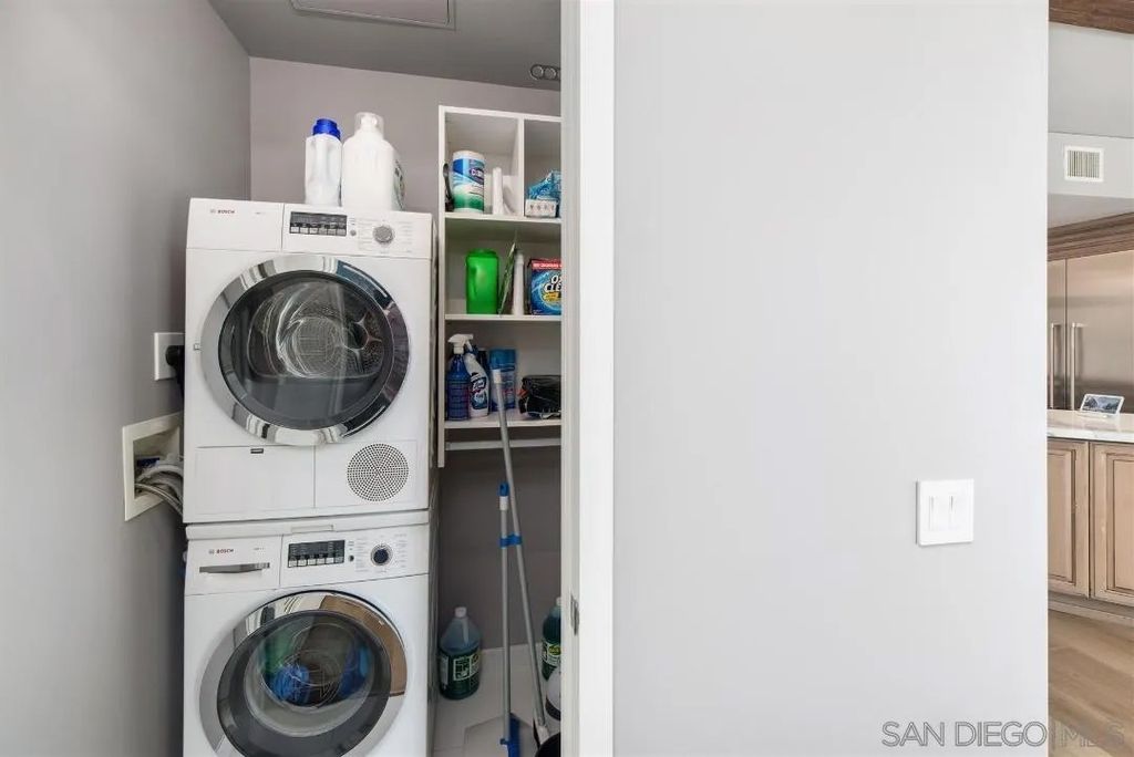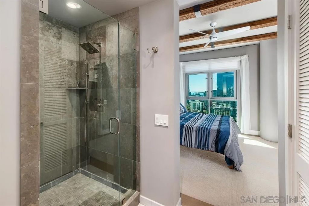 Turn key, stunning condo w/Panoramic views of bay, bridge, city, & mountains from every room! Expansive open concept, 10ft beam ceilings & floor to ceiling windows w/ custom electronic shades. Professionally decorated & completely remodeled to perfection w/high end finishes THROUGHOUT! Chefs dream kitchen complete with a complete Thermador appliance suite, wine fridge, copper trough sink & marble countertops. Custom designed his & hers luxury closets, wood floors & custom lighting. Chandelier in living room & 2nd bedroom/office wall system, both from Restoration Hardware will convey. Assigned storage unit & parking space. Steps to restaurants, Balboa Park, Tweat Street Park, Little Italy, Bankers Hill, Hillcrest & 10 minutes to the airport. *PARKING SPACE IS ON P2 SPACE #27 *STORAGE SPACE IS ON P3, STORAGE ROOM 10, ROOM 3 NEXT TO PARKING SPACE 40.