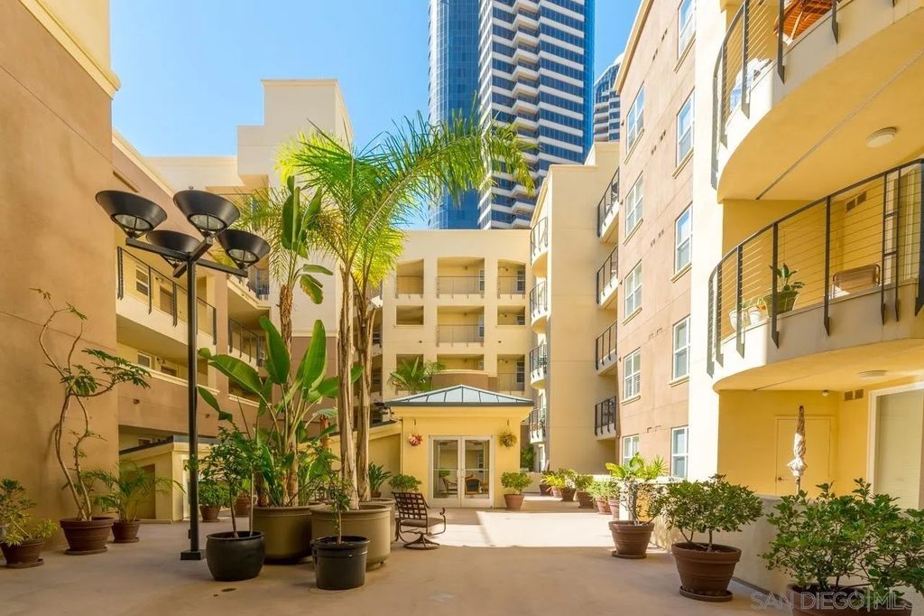 Welcome to Crown Bay, one of Downtown San Diego's most sought-after addresses. This south facing, bright and airy residence features a smart split floor plan, hardwood floors, two private balconies perfect for soaking in the San Diego sunshine, and beautiful hardwood floors in original condition that add warmth and character throughout. Two side-by-side parking spots "” not tandem "” are included, a rare and valuable bonus. Crown Bay is a boutique art nouveau building with only 84 residences, offering an intimate community feel with resort-style amenities including a fully equipped fitness center, rooftop BBQ lounge, and an elegant atrium courtyard. And with Fleming's Steakhouse right on the ground floor, fine dining is literally steps from your front door. Step outside and you're one block from the world-famous Gaslamp Quarter, a short stroll to Petco Park, the Waterfront Park, the Convention Center, and some of the best restaurants, shopping, and nightlife Downtown San Diego has to offer. Opportunities like this don't come around often. Don't miss your chance to own a piece of San Diego's vibrant downtown lifestyle!