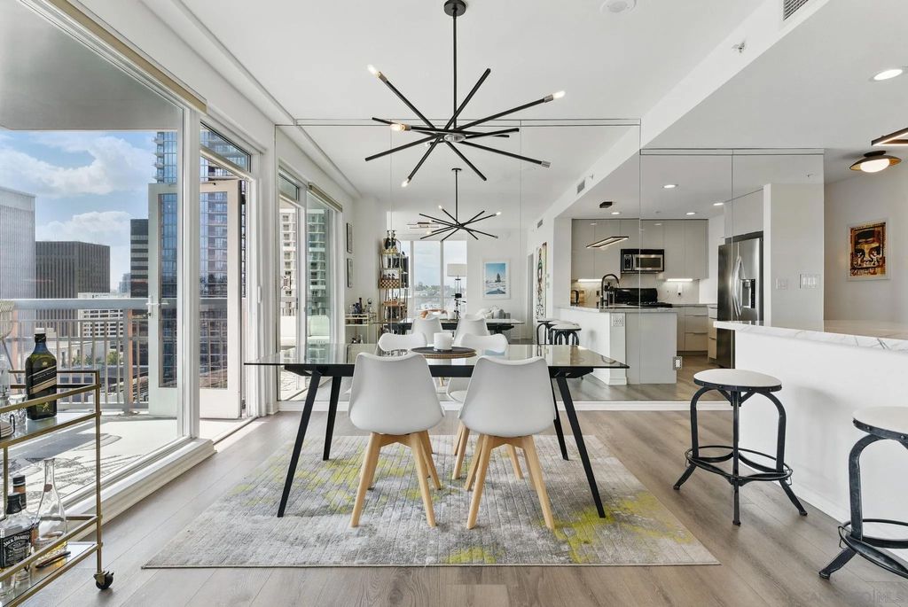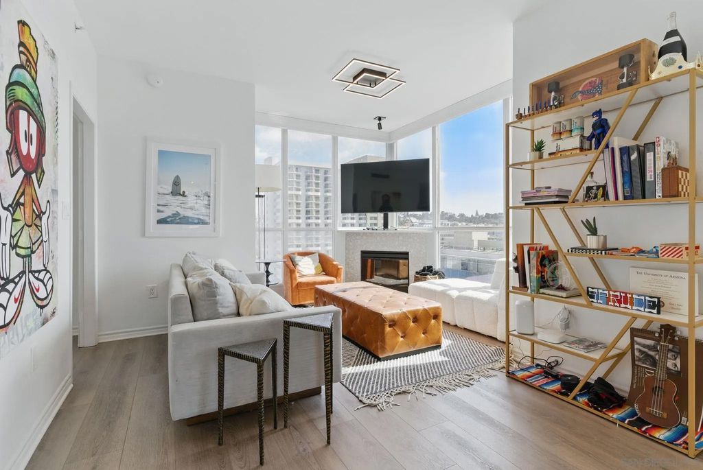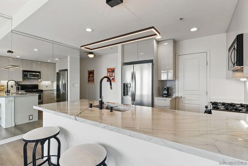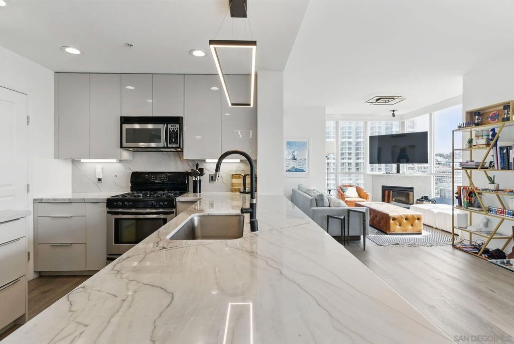 Welcome to this stunning 2 bedroom, 2 bathroom corner unit in the highly sought-after La Vita building, located in the heart of San Diego's vibrant Little Italy neighborhood. This beautifully updated residence offers expansive bay and city skyline views through floor-to-ceiling windows that flood the home with natural light. The open-concept layout features a remodeled kitchen that seamlessly connects to the dining and living areas, leading out to a private balcony"”ideal for relaxing or entertaining while enjoying picturesque sunsets. The spacious primary suite includes large windows with panoramic views and a remodeled ensuite bathroom with a modern vanity and lighting. A second bedroom and full guest bathroom provide additional space, perfect for guests or a home office. Additional features include in-unit laundry, central heating and air conditioning, and secure underground parking. Residents of La Vita enjoy resort-style amenities including a pool, spa, fully equipped fitness center, BBQ area, and beautifully landscaped courtyards. Located just steps from Little Italy's popular restaurants, cafes, boutiques, and the weekly farmers market, with convenient access to the waterfront, downtown, and public transit. This is urban living at its finest.