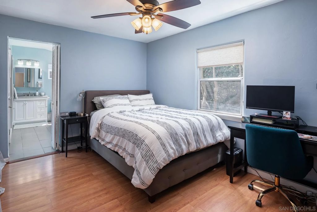 Terrific 2 Bedroom 2 Bathroom Single-Story Home in the Highly Coveted Point Loma Neighborhood. Delightful Curb Appeal! Open Floorplan with lots of Natural Light. Upgraded Kitchen with Granite Countertops, Stainless Steel Appliances and Newer Gas Range! THE WORKS! NEW AC/Heat Ductless Mini-Split! Multiple Ceiling Fans! Hardwood Throughout with Tile Flooring in Bathrooms. Wonderful Primary Bedroom Walk-In Closet! Upgraded Bathrooms! Converted Garage Area into a Magnificent Kid's Play Room/Man Cave! Fantastic Private Backyard with Built-In Gas Grill! Ideal for Summer BBQs! Mature Trees with Ample Shade. Easy Freeway Access. Amazing Coastal Community! Close to Beach, Parks and Neighborhood Stores. Marvelous Family Home!