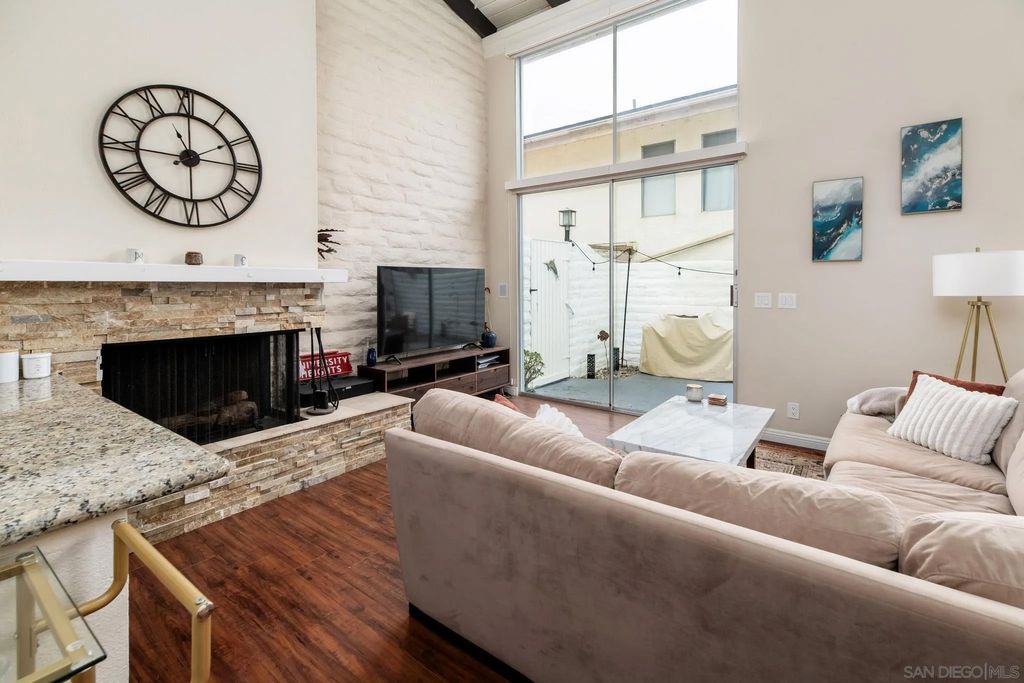 Beautifully upgraded 2 Bed/2 Bath townhome in the highly desirable La Costa Fairways community, offering 1,326 sq ft of light-filled living with a perfect blend of comfort and style. Vaulted ceilings with exposed wood beams and expansive floor to ceiling windows create an open, airy feel, while rich wood laminate flooring adds warmth throughout. The inviting living room centers around a cozy fireplace and opens seamlessly to a private patio through oversized sliding doors, ideal for indoor/outdoor living and entertaining. The well appointed kitchen features travertine tile flooring, granite countertops, and stainless steel appliances, designed for both everyday living and hosting. A full bedroom and updated bath on the main level provide flexibility for guests, a home office, or multigenerational living. Upstairs, the spacious primary suite offers a peaceful retreat with its own private balcony to enjoy coastal breezes, along with an upgraded ensuite bath featuring a walk-in shower, dual vanities, and a generous walk-in closet. Ideally located adjacent to the La Costa Golf Course and just minutes to beaches, top-rated schools, shopping, dining, and freeway access. This is an exceptional opportunity to enjoy the best of North County coastal living.