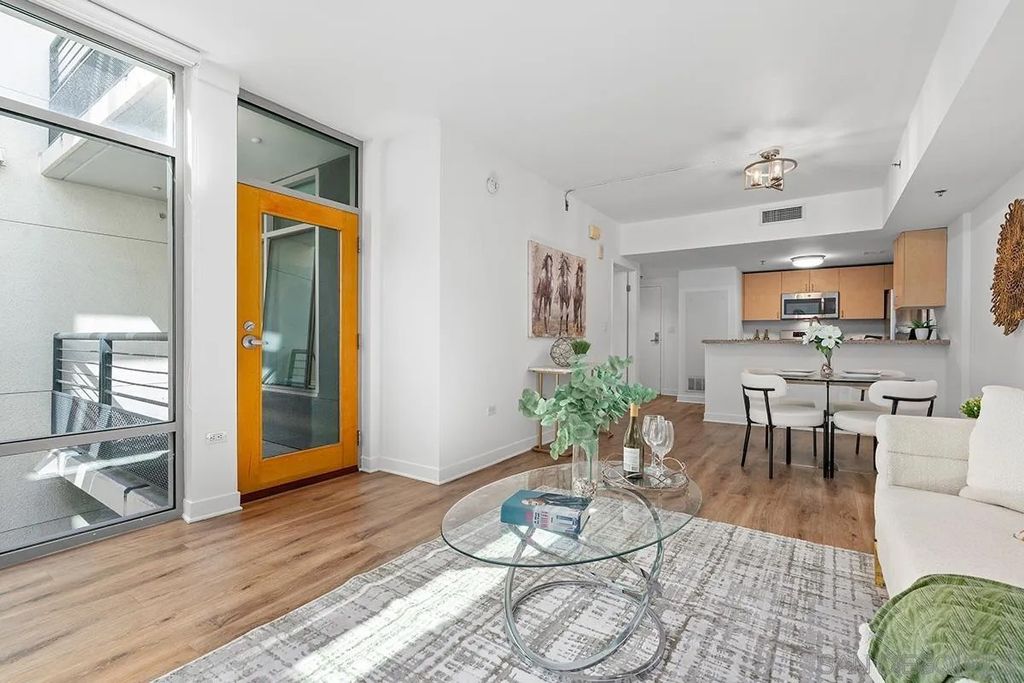 One of the largest and most spacious two bedrooms, two bathrooms in Acqua Vista AND the rare bonus of two private balconies! Perfectly positioned in the heart of Little Italy, this pride-of-ownership home offers a front-row seat to one of San Diego's most vibrant and walkable neighborhoods. The open floor plan lives large with dual bedroom suites thoughtfully separated for optimal privacy while enjoying the airy, connected feel of the main living space with dining area. The primary suite earns lives up to its name with private balcony access and a remodeled ensuite bathroom with dual vanity and a step-in shower. The kitchen is well appointed with newer stainless appliances (including induction range) and granite counters. In-unit stackable laundry and one assigned valet parking space handle the practicalities. Step outside and you're in the thick of it with the Little Italy Mercato, acclaimed restaurants, boutiques, and neighborhood cafes all within a few blocks. The Gaslamp District and San Diego Bay are an easy stroll, and the airport is minutes away, a quiet luxury for frequent travelers. Some neighborhoods are convenient. Little Italy is a destination. Downtown San Diego's Little Italy is a vibrant culinary and cultural hotspot, beloved for its rich history and modern flairs. Classic restaurants like Mona Lisa and Civico 1845, alongside new favorites Ironside, Juniper & Ivy, and Craft & Commerce, make it a go-to for local foodies. The neighborhood is filled with cafes, bakeries, boutiques, bars, and wine shops, perfect for an evening wander. The Little Italy Association also keeps the calendar full with community events such as art walks, car shows, the yearly Little Italy Festa, and a vibrant Farmers Market on Wednesdays and Saturdays. Don't forget the NoLi Art & Design District, a vibrant hub that includes a collection of retail outlets, designer boutiques, and art galleries, all boasting unique home items and rare discoveries to help you curate the perfect ambiance for your new residence. Acqua Vista features complimentary valet parking for residents, 24/7 security and lobby attendants, a fitness center, and an 8th floor pool and spa deck, barbecues and lounge area. Residents can also take advantage of the community's electric vehicle charging stations. *Have a 2nd vehicle? The HOA leases additional parking spaces too!*