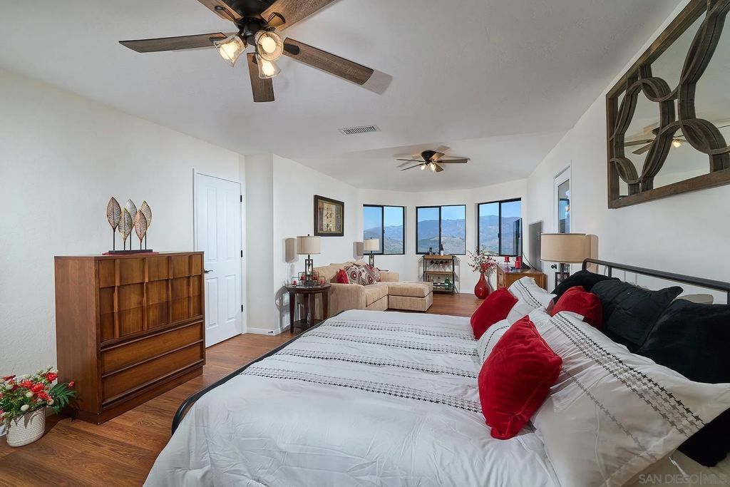 Views galore! Private single-story custom home at the end of a long driveway with sweeping north-facing vistas and a 40-ft long deck overlooking rolling hills. Set on 2.44 acres of mostly natural, low-maintenance land with two sheds and a 3-car garage. Inside features fresh paint, new flooring, vaulted ceilings, an open floor plan, and a warm country-modern feel. The oversized main bedroom suite offers a seating area, walk-in closet, and a bath with walk-in shower and custom cabinetry. The kitchen includes a breakfast nook with 180° views. Finished bonus room below is ideal for a gym or hobby space. Country living with minimal upkeep in Valley Center "” a hidden gem for quality of life. Discover the many places to take in the rolling hills, sunsets, and endless horizon "” the kind of view that never gets old. John Deere tractor included. The wow-factor keeps on going as you explore the property. Wander the grounds and you'll find multiple peaceful hang-out spots perfect for morning coffee, evening wine, or simply soaking in the solitude. Located just minutes from Valley Center's conveniences "” and an easy drive to local casinos "” this home offers the best of rural living with modern comfort. Valley Center remains one of San Diego County's hidden gems, known for its quality of life, open space, and small-town charm. Beyond the main living areas, the home includes a huge walk-out basement, offering exceptional storage and flexible utility space. The prior owner operated a woodworking shop, and the home is equipped with upgraded electrical panels to support heavier equipment and expanded power needs.Recent improvements include brand-new attic insulation and 2022-installed solar panels, adding energy efficiency and long-term savings. For buyer peace of mind, a full home inspection has already been completed, providing transparency and confidence as you move forward.