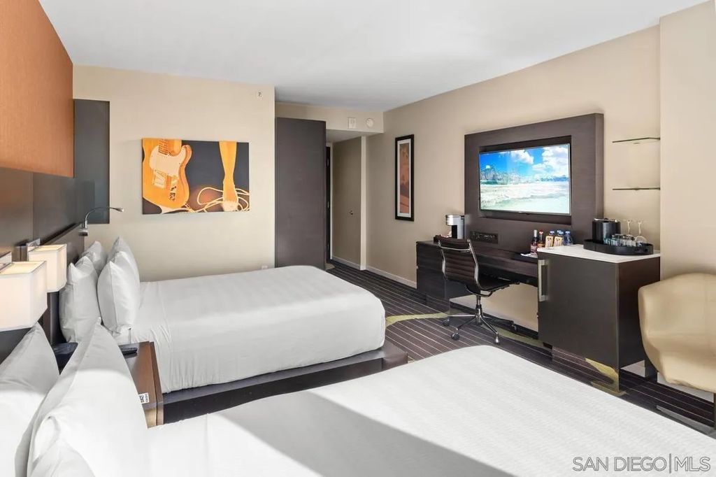 Own a piece of the spotlight at the iconic Hard Rock Hotel San Diego! This "Rockstar" suite offers a premier fee-simple investment in the heart of the Gaslamp Quarter, steps from Petco Park and the Convention Center. This high-design unit features the signature "Sleep Like a Rock" bedding, a spa-inspired bathroom with a Hansgrohe rainfall shower, and floor-to-ceiling windows with urban views. Ownership includes "Rock Royalty" VIP status: front-of-line access to FLOAT rooftop bar and 207, priority seating at Nobu, and access to the exclusive VIP lounge. Owners enjoy a hands-off investment with professional hotel management handling all bookings and maintenance. Experience the ultimate blend of luxury, entertainment, and urban convenience!