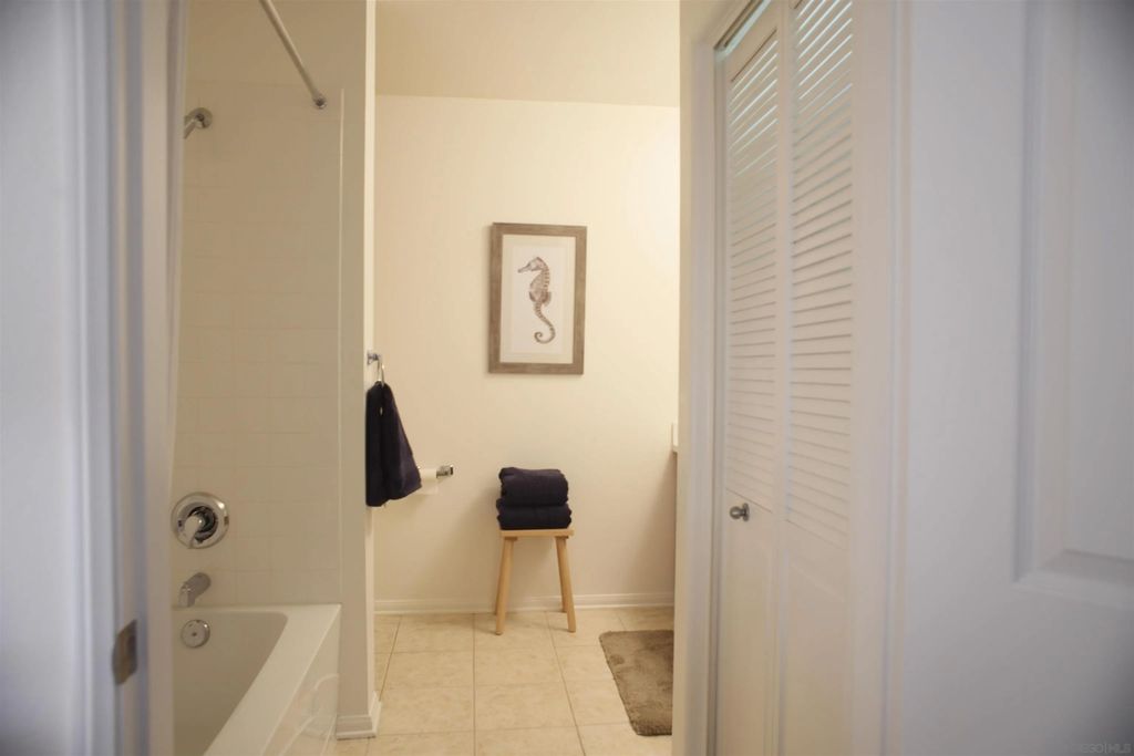 Located in the highly sought after Marina District, Crown Bay offers an unbeatable location at the center of downtown's vibrant lifestyle. Just steps from the best of the city, you'll enjoy award winning dining, waterfront strolls along the Embarcadero, easy access to the Gaslamp's Quarter's nightlife and entertainment. Walk across the street to the Convention Center and Petco Park, plus the airport proximity adds the ease of travel. Residents of Crown Bay enjoy a variety of amenities, including a well equipped fitness center, spacious patios and BBQ area, both areas complete with seating and tables for entertaining or relaxing. The home features two parking spaces (tandem) and metered parking surround the building. Primary bedroom has walk-in closet and a slider out to the private balcony with walk in storage closet, secondary bedroom has full wall length closet, and is across from 2nd full bathroom with tub and stacked closeted washer/dryer. Kitchen has large pantry plus a great amount of cupboards and counter space. You will be surprised with how spacious this home feels as you walk into a separate tiled entry. The main entrance has elegant glass double doors into a lounge inspired lobby with inviting couches and decor that you will be proud to meet guests in. Furniture is negotiable, this was a second home and rarely used by one owner.
