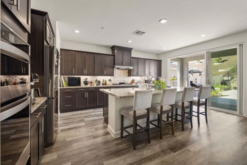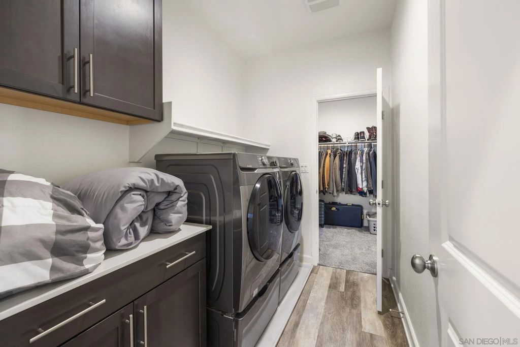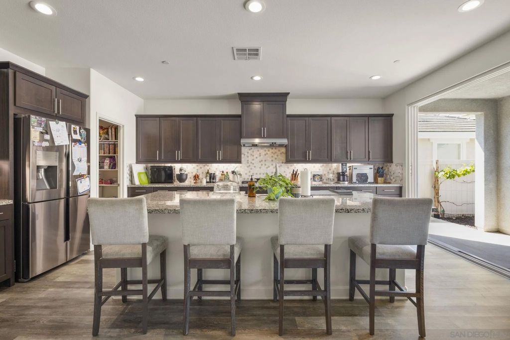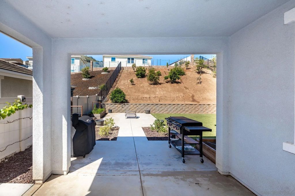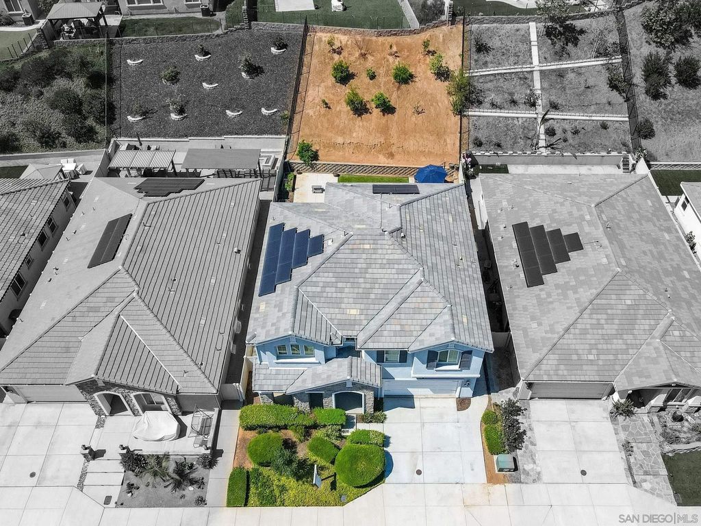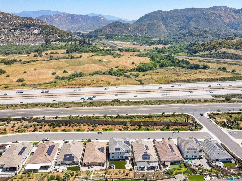 Welcome to Aurora Heights! A beautiful, low tax, newer community in Fallbrook close to base, shopping, schools, golf, casinos and easy freeway access for your convenience. This property features luxury vinyl flooring, quartz counter tops, dark oak cabinets, dual pane windows, tankless water heater, water softener and paid off solar panels. The kitchen features a large 10 ft island and a large walk-in pantry. A first floor bedroom with close access to a full bath adds convenience for guests or family. The large loft can easily be used as an office or entertainment space and the master walk-in closet has its own pass through to the upstairs laundry room for super easy access during laundry days. Take advantage of the tandem garage set up with a work out area or additional parking. Backyard includes Lemon, Mandarin, Peach, Tangelo, Apple, Strawberry Guava, Orange, Pomegranate, Ruby Supreme Guava, Avocado, Santa Rosa Plum, Mango trees along with 4 Blueberry bushes and 2 green seedless Grape vines for delicious fruit all year long. Enjoy one of the largest lots the community has to offer along with easy care turf in back. Walk to the community park and enjoy the pool, spa, playground, basketball court, and large green area for enjoyment on those days off.