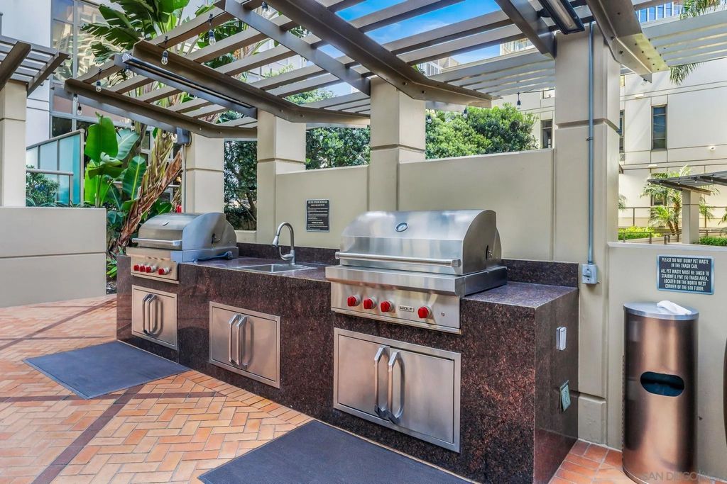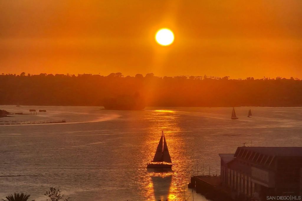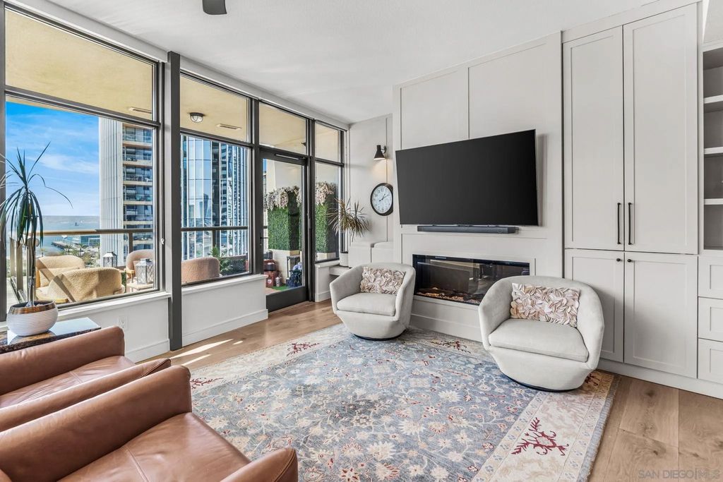 Beautiful and rarely available southwest corner residence in the iconic Electra Building, offering 2 bedrooms, plus 1 optional flex-use room (ideal as a 3rd bedroom or office) and 2 baths with breathtaking bay and city views"”finally, your opportunity to have the ultimate corner office at home. This remodeled, light-filled home showcases expansive windows framing sweeping views from every room, along with a private west-facing terrace ideal for sunset vistas and dazzling firework displays. A cozy fireplace framed by elegant built-ins creates a warm yet refined living space. The kitchen is well-appointed with bar seating, quartz countertops, custom tile backsplash, and a built-in microwave. The spacious primary suite offers dual closets, including a walk-in, along with an updated luxurious bath featuring dual sinks, a walk-in shower, and separate soaking tub. A full-size stacked washer and dryer add everyday convenience. Additional highlights include an assigned oversized parking space"”capable of accommodating two small vehicles"”with an EV charger and dedicated storage, both located on the third floor. Residents enjoy access to the beautifully restored historic conservatory with soaring cathedral ceilings, along with resort-style amenities including 24-hour concierge, pool, spa, sauna, steam room, completely remodeled TechnoGym fitness center, and outdoor BBQ and dining areas. Don't miss this rare opportunity"”perfect for those seeking elevated urban luxury in Downtown San Diego. Ideally located in the heart of Downtown, you are surrounded by all that makes living in San Diego great - Petco Park, bustling cafes, bars, boutiques, Balboa Park, the waterfront, Coronado Island, Little Italy, Gaslamp District and so much more!