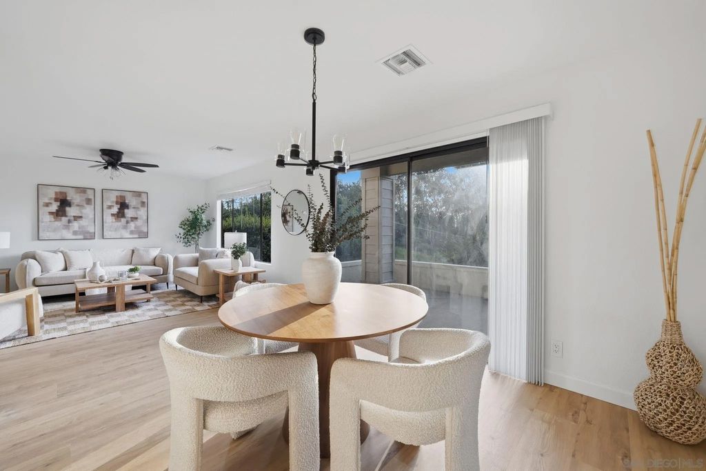 Newly remodeled townhome in the desirable Glenwood Springs community of Scripps Ranch. The renovation includes a stylish new kitchen, remodeled bathrooms, brand new central AC/heat, LVP flooring throughout, new fixtures, and much more. Inside you will find a spacious and open living area great for entertaining. Outside you will find three private outdoor spaces including a front courtyard, back patio, and a balcony with views of the eucalyptus trees and grassy area in the back. This unit is in a great location within the community with no neighbors behind. There is plenty of guest parking in the complex, along with a pool and tennis courts. Located across the street from Miramar Reservoir with fishing, kayaking, and hiking. In close proximity to highly rated schools, the lake, nearby restaurants, and the 15 freeway.