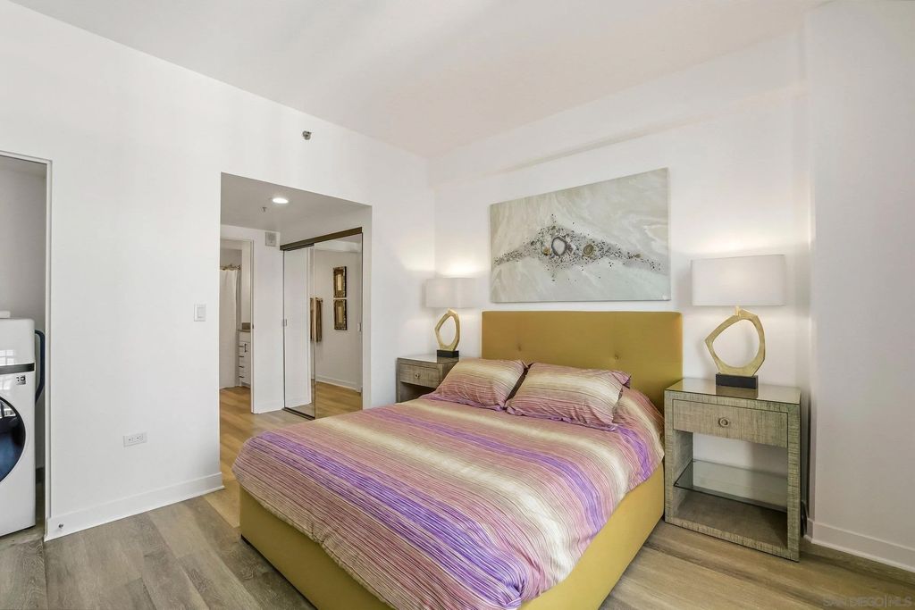 Experience elevated living from this beautifully updated 16th-floor residence in the highly sought-after Acqua Vista community in the heart of Little Italy. Located just below the penthouses, this light-filled home features high ceilings and expansive windows, creating a bright, inviting living space that feels both stylish and comfortable. Professionally designed, custom-made furnishings add both function and style, and may be negotiated separately. Used as a second home and very lightly lived in, this residence is truly 100% move-in ready. The home has been thoughtfully updated with an upgraded kitchen featuring stainless steel appliances, updated flooring, and a clean, modern aesthetic. The living and dining areas open to a spacious private balcony with views of the bay, airport, and SeaWorld fireworks"”perfect for relaxing at the end of the day or enjoying your morning coffee above the city. The bedroom is generously sized with dual closets, and the home includes in-unit laundry for added convenience. Acqua Vista was recently remodeled and offers an impressive collection of resort-style amenities: valet parking, an 8th-floor rooftop pool and spa with fire tables and BBQ area, a fitness center, EV charging stations, Amazon lockers, a package room with perishable notifications, full-time security, 24-hour concierge staff, and an on-site HOA manager. Aqua Vista is also a VA-approved community! All of this is just steps from award-winning restaurants, cozy coffee shops, the scenic waterfront, and the renowned Little Italy Farmers Market. Whether you're searching for a full-time residence, a stylish second home, or a prime investment opportunity, this condo delivers an unbeatable combination of location, amenities, and value.