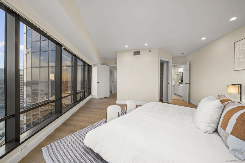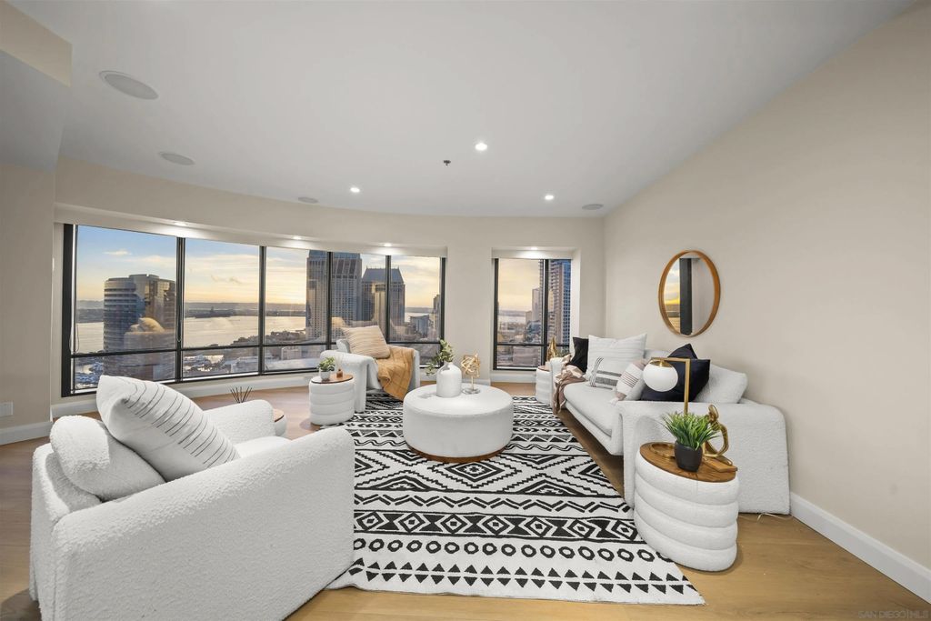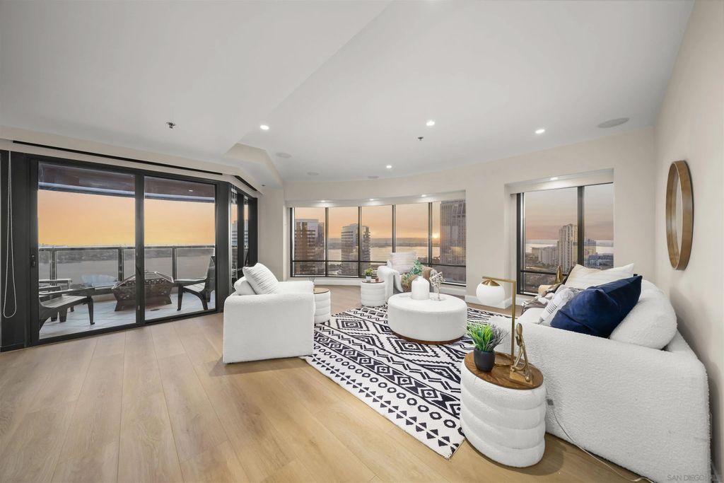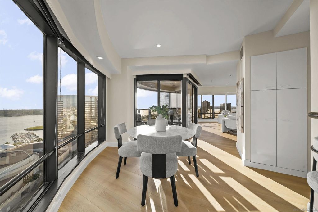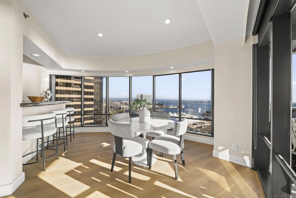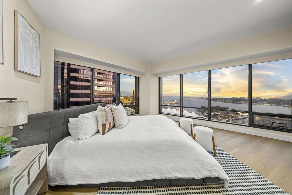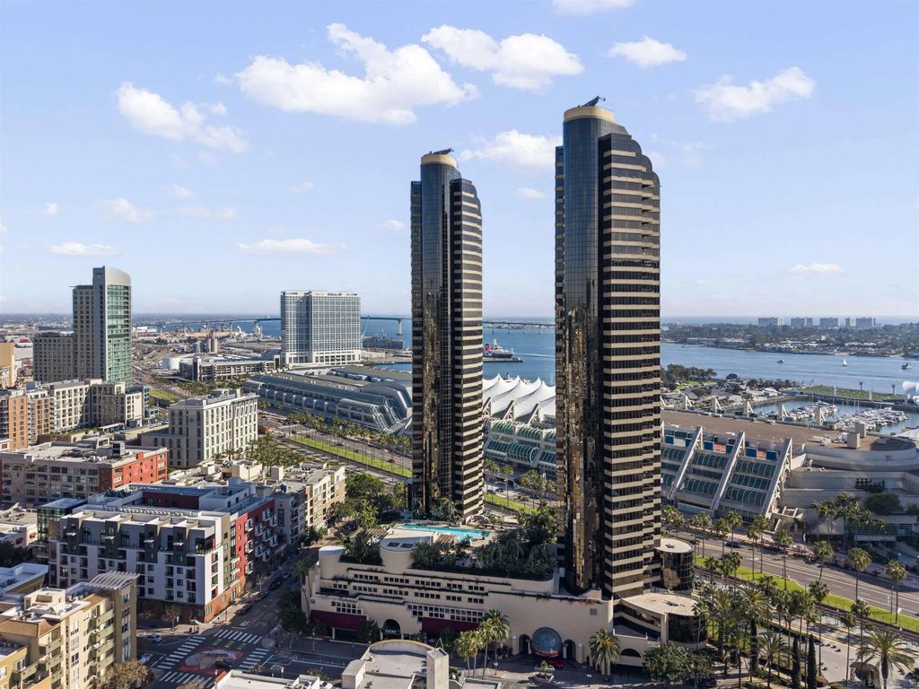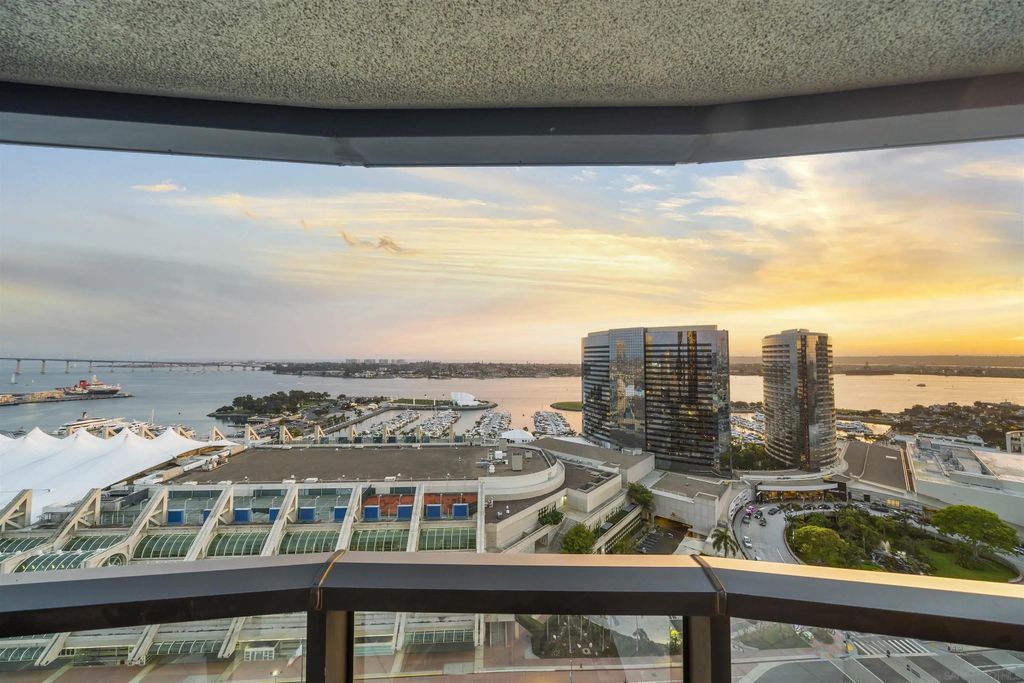 Welcome to Harbor Club Residence 2405, featuring the iconic "bubble" floor plan and positioned high on the 24th floor. This 2-bedroom, 2-bath residence offers breathtaking, unobstructed views from every room, spanning the bay, Coronado, the Coronado Bridge, and the Downtown skyline. Set on the true front row of Downtown's waterfront, this residence offers one of the closest possible positions to the bay, with no residential development permitted south of Harbor Drive. The signature curved "bubble" layout maximizes glass and view exposure, creating a bright, dramatic living experience throughout. The home has just been refreshed with new flooring, fresh paint, and a new dishwasher, along with additional upgrades completed over the years. The spacious primary suite features a custom walk-in closet, while both bedrooms enjoy incredible panoramic views. An exclusive-use EV charger was also installed at the unit's parking spaces. Harbor Club has long been one of Downtown's most desirable addresses, known for its prime location and protected, unobstructed views. Residents enjoy a full-service luxury lifestyle with amenities that include a rooftop pool and spa, clubhouse, fitness center, sauna, 24-hour concierge and doorman, and a private library and meeting space. A rare opportunity to own one of Harbor Club's most sought-after floor plans in a premier waterfront setting.