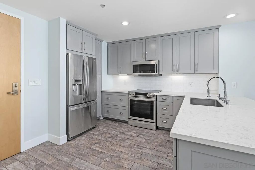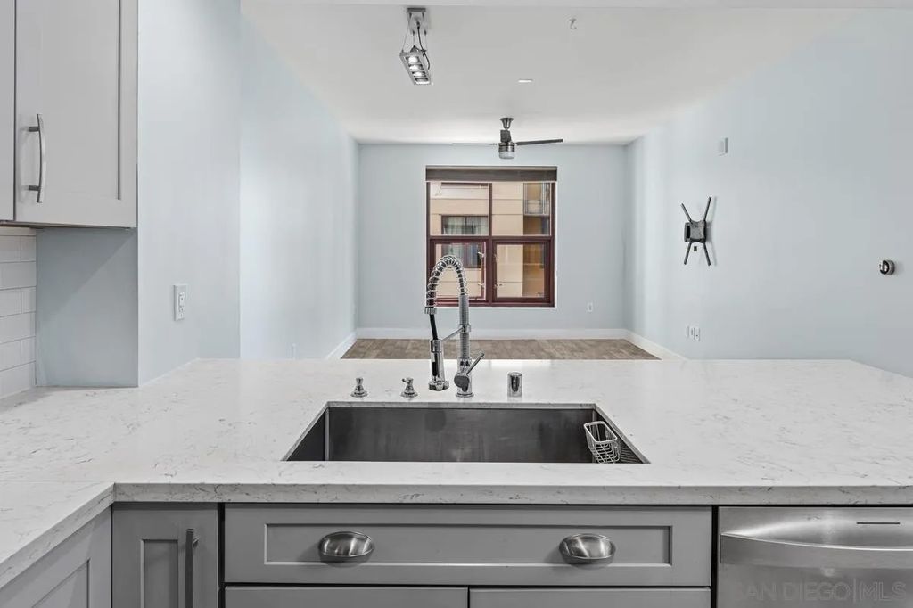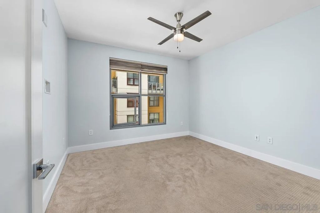 Welcome to Metrome, a contemporary mid-rise residence in the heart of Downtown San Diego, just moments from Petco Park, the Gaslamp Quarter, top dining, and the Marina District. Ideally positioned with easy access to major freeways, this location offers the perfect balance of vibrant city living and everyday convenience. This is the ONE! Beautifully upgraded, quiet interior 1-bedroom, 1-bath residence features a bright, open layout with large windows that fill the space with natural light. The home showcases modern finishes throughout, including white countertops, stainless steel appliances, upgraded laminate flooring, premium bedroom carpeting, and custom paint. Enjoy the convenience of in-unit laundry, one assigned parking space, and a private storage unit.