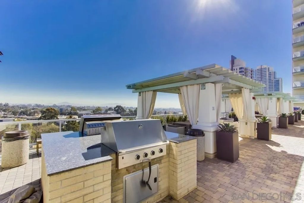 Welcome to Discovery at Cortez Hill by Bosa Development"”one of downtown San Diego's best values in full-service high-rise living. Ideally positioned on a quiet, tree-lined street, this east-facing residence is filled with natural light through expansive floor-to-ceiling windows, capturing tranquil views of the surrounding hills and treetops. Offered furnished for a true turnkey experience, this move-in ready home blends comfort and functionality. Continued in supplement below.... Highlights include a spa-inspired soaking tub, cozy gas fireplace, spacious walk-in closet, and a thoughtfully designed second bedroom featuring a built-in office and additional storage. Entertain with ease thanks to the wine fridge and enjoy indoor-outdoor living on the oversized private balcony. Elegant plantation shutters throughout add warmth and timeless style. Perched above downtown, Discovery is a landmark community in the highly desirable Cortez Hill"”known for its peaceful atmosphere while remaining just minutes from the energy of the city. You're only a short walk to Little Italy and Balboa Park, offering the perfect balance of urban convenience and neighborhood charm. Residents enjoy a full suite of resort-style amenities, including a 24-hour attended lobby, on-site management, fitness center, business and conference facilities, and a beautifully designed entertainment lounge. The elevated 10th-floor amenity deck features a heated lap pool, spa, BBQ areas, sauna, and steam rooms with full locker facilities. Secure gated parking, video surveillance, bicycle storage, and a private storage cage add everyday convenience and peace of mind. HOA dues include water, gas, and internet. Additionally, Cortez Hill residents benefit from the City's highly affordable "F" permit parking program, offering convenient street parking for approximately $15 per year.