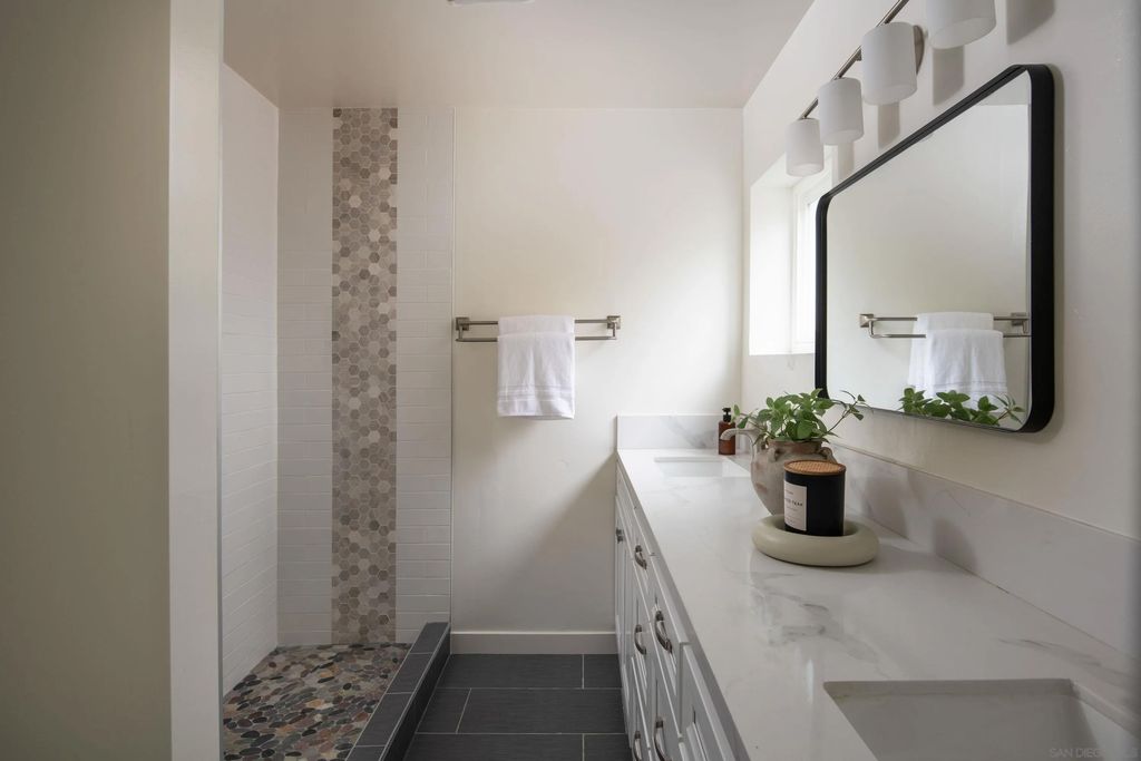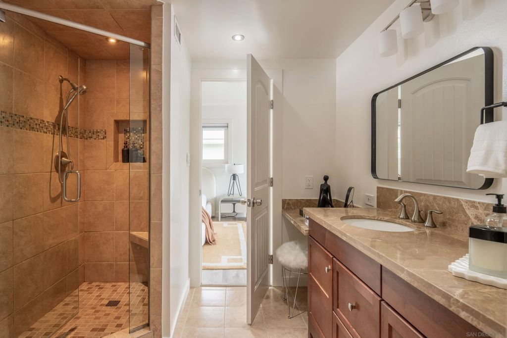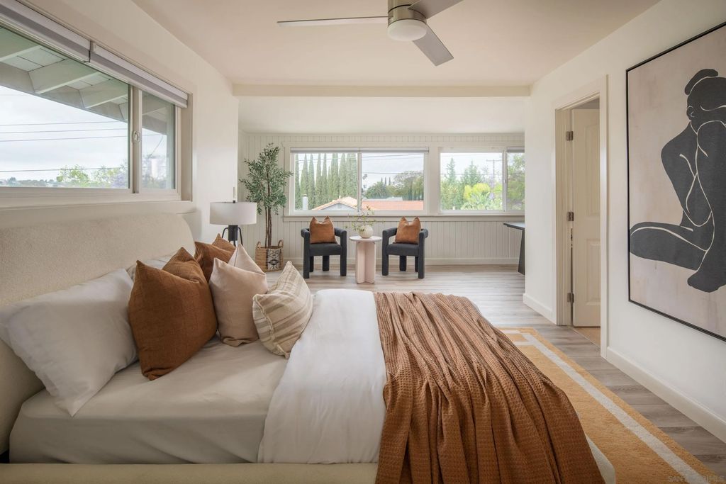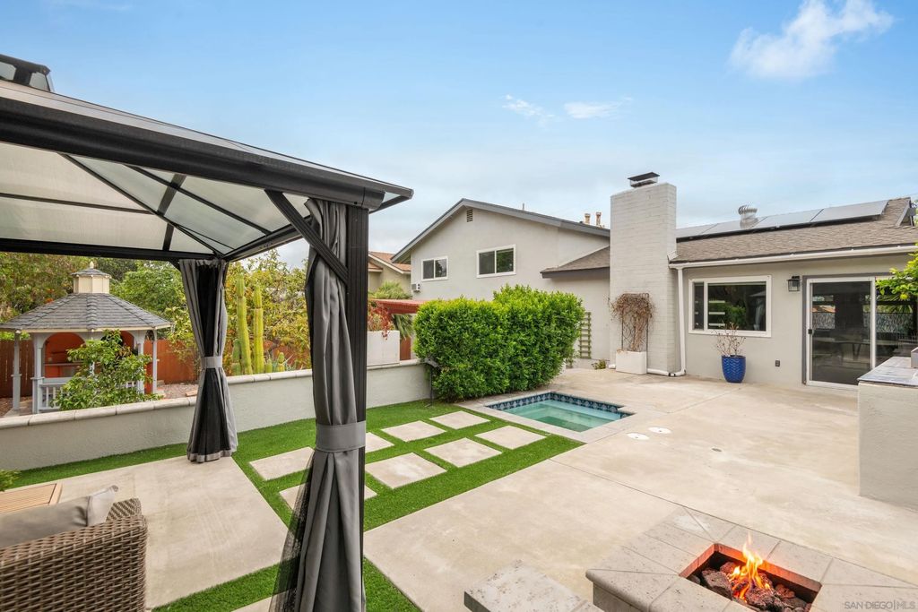 Beautifully upgraded 4-bedroom, 3-bath home featuring dual primary suites and a blend of modern updates and functional living. This move-in-ready property includes a new HVAC system, updated plumbing, new LVP flooring, and fully owned solar with two batteries and an EV charger for added efficiency. The second primary suite offers its own private entrance, ideal for guests, extended family, or added flexibility. The main primary suite includes a bonus space perfect for a home office or sitting area. The private, multi-level backyard is designed for both everyday living and entertaining, complete with a built-in BBQ, in-ground spa, low-maintenance turf, and mature landscaping featuring 10+ fruit-producing trees. Prime location near Lake Murray with convenient access to shopping, dining, and outdoor recreation.