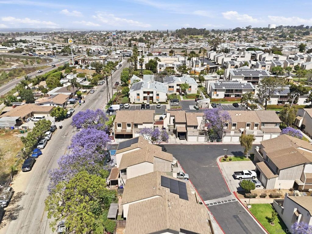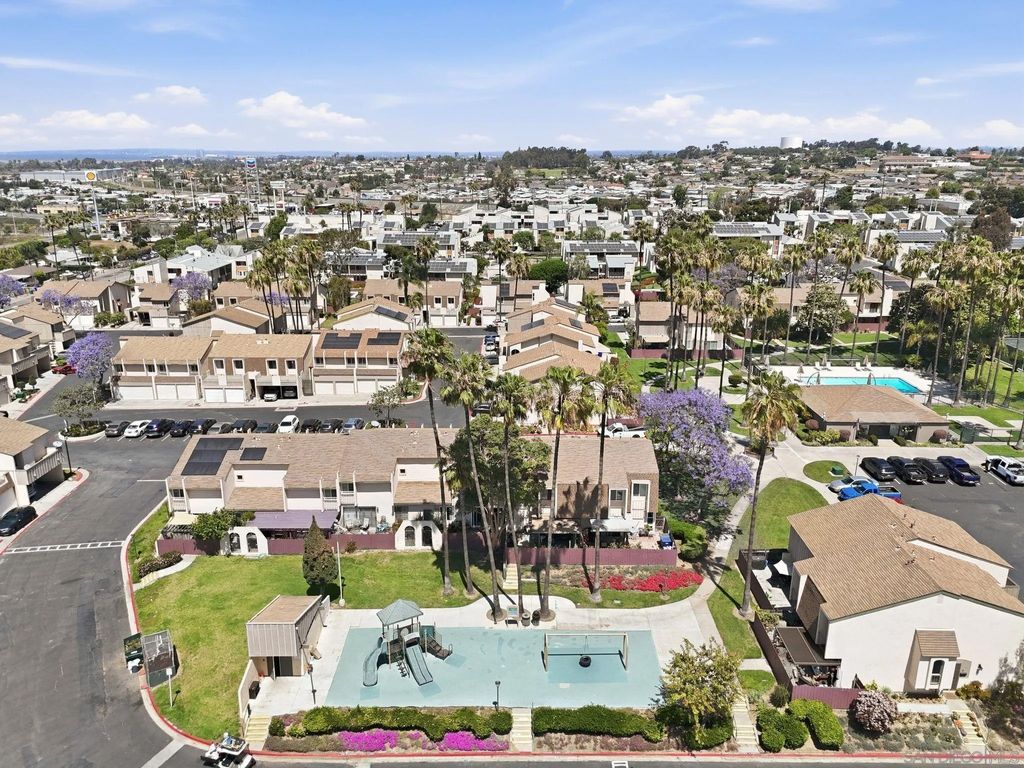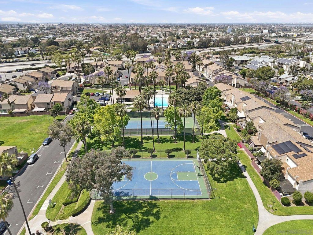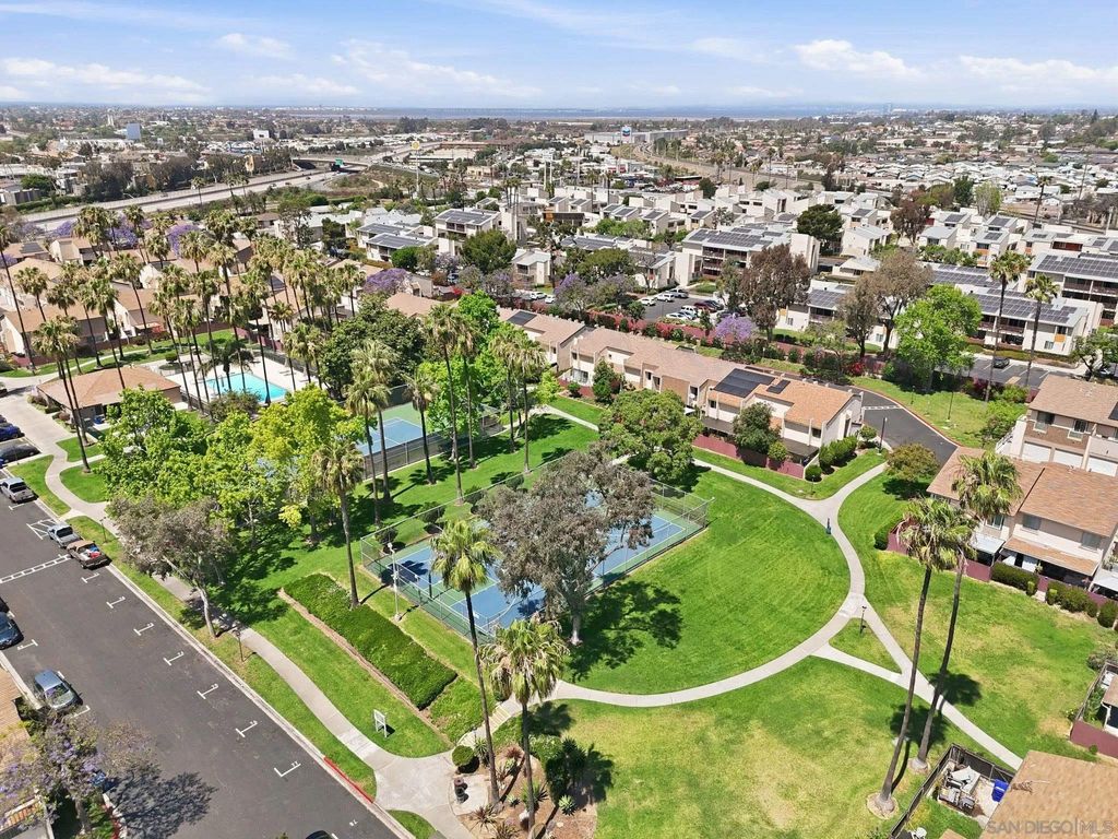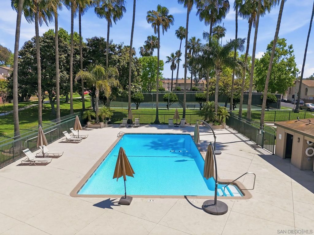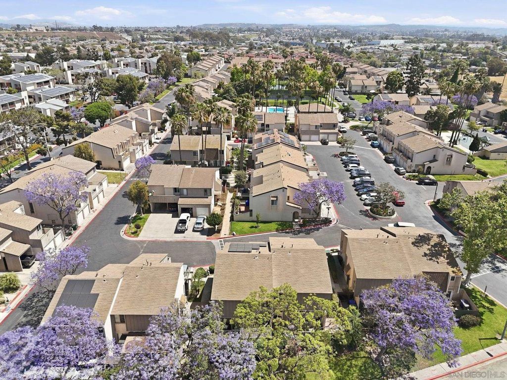 THE best value in San Diego! Townhome 4 bedrooms, 2.5 baths, 4-car carport, a yard, community pool, clubhouse AND tennis courts located close to everything and SUPER low HOA. Rare opportunity to buy in Caminito Grove. Solar with SunRun, buyer to assume. Private patio and in-unit washer and dryer!