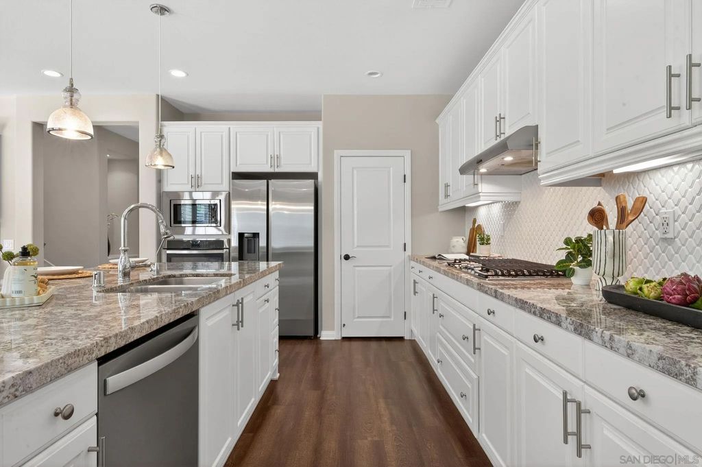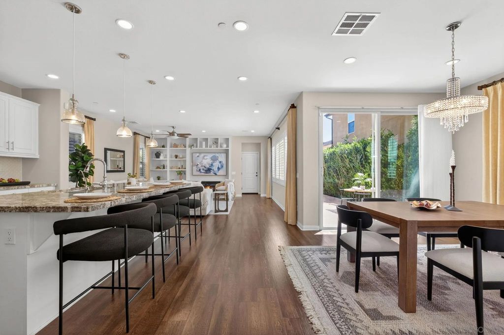 Welcome to sought-after Harmony Grove Village, where comfort, convenience, and community come together. This home offers a thoughtfully designed layout ideal for everyday living. The kitchen features a large center island with bar seating, stainless steel appliances, and ample storage, flowing seamlessly into the open-concept living and dining areas"”perfect for both relaxing and entertaining. Custom built-ins enhance the dining room, living room, and primary bedroom closet, adding both style and functionality. The main level also includes luxury vinyl flooring and a convenient powder room for guests. Step outside to a private, easy-care patio space, ideal for outdoor dining. Upstairs, the spacious primary suite includes a walk-in closet and dual sink vanity. Two additional bedrooms share a Jack-and-Jill bathroom with dual vanities, offering both functionality and privacy. A dedicated laundry room with storage and an attached two-car garage provide added everyday convenience. Additional highlights include a water softening system and a sprinkler system, adding to the home's efficiency and ease of maintenance. Residents of Harmony Grove Village enjoy access to community pools, spa, parks, playgrounds, BBQ areas, and miles of scenic walking and biking trails. A great opportunity to own in one of North County's most popular planned communities!